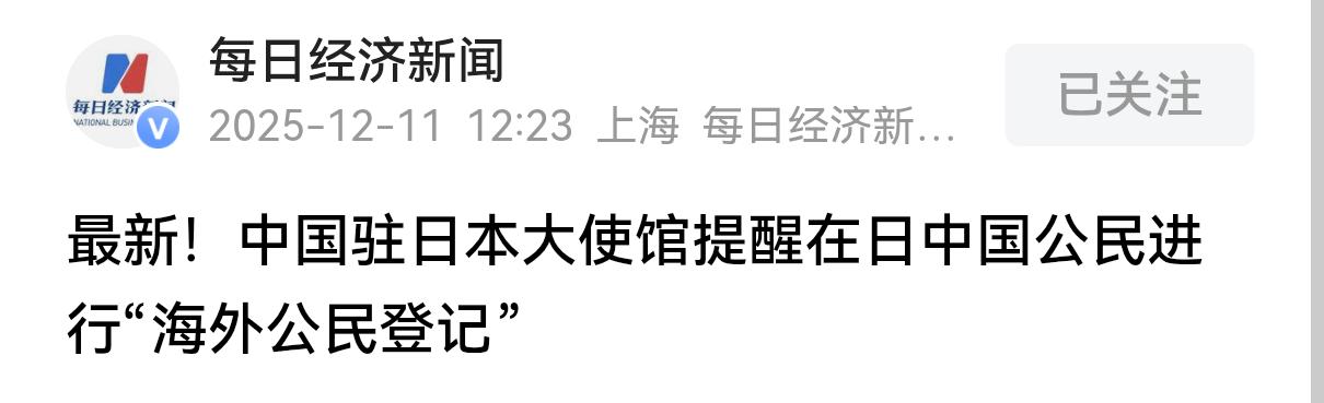 要干什么?中国驻日使馆发布消息,开始统计在日中国公民信息 近期我国驻日本使领馆对外发布消息,提醒在日本的我国公民进行海外登记。登记的方法是通过大使馆的APP进行操作。 在中日两国关系比较紧张的局势之下,我国大使馆的这个做法格外引人注目。那么我们的大使馆为什么会做出这样的决定呢? 第一,日本的地震灾害有愈演愈烈的倾向 根据日本地质专家的测算,如果日本东京爆发7.3级地震的话,将会造成超过80万亿日元以及1.8万人伤亡的损失。目前日本的地震数量有越来越多的趋势,大使馆发布这样的信息,就是要尽可能的保护在日本的中国公民的安全! 第二,考虑到两国的实质关系 其实在此之前,我国就已经提醒公民近期不要前往日本,日本社会治安情况并不好,尤其是针对华人的一些案件频发很多案子到现在都没有破。而且现在中日两国关系比较紧张,考虑到后续的一些发展,这个时候积极的掌握在日本的中国公民的相关信息,也是一种提前的预防手段。