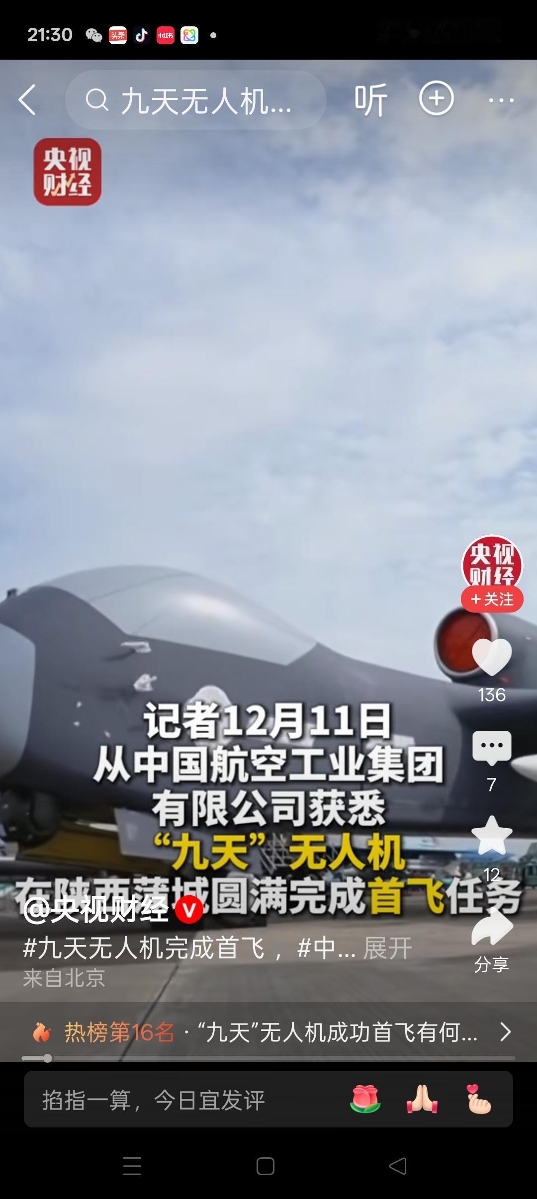 中国无人机发展历程 中国无人机的发展历程始于20世纪50年代,早期在苏联援助下开展研究,后转向自主研制。 一、1966年12月6日:长空一号(CK-1)首飞成功。这是中国第一种多用途喷气式无人机,基于苏联拉-17靶机改进,采用助推起飞方式,主要用于靶机和侦察任务,标志着中国无人机自主研制的开端。二、长虹-1无人机(外文名:DR-5),别名无侦-5,是由中国北京航空航天大学无人驾驶飞行器设计研究研制的高空多用途无人驾驶飞机,1980年12月25日研制成功并装备部队。该机基于美BQM-34"火蜂"无人机逆向仿制,主要用于军事侦察、高空摄影及地质勘探等任务。 三、1982年10月:D-4无人机(由西北工业大学研制)首飞。这是一种小型低空低速多用途无人驾驶飞机,主要用于战术侦察和校射。作为中国首型国产战术无人侦察机,该机1985年投入批量生产。 四、中国的攻击-11无人机(也称GJ-11或“利剑”无人机)的首飞时间是2013年11月21日,该项目于2009年启动,首架技术验证机于2012年下线。攻击-11在2019年国庆70周年阅兵式上首次公开亮相,并已装备部队。 五、攻击-21(GJ-21)是中国自主研发的全球首款量产舰载隐身无人攻击机攻击-21无人机于2025年首次公开亮相,其型号名称通过央视国防军事频道《军情时间到》栏目在2025年9月27日首次发布。它已首次在福建舰航母成功完成了电磁弹射起降,成为全球首款在航母上实现电磁弹射的无人机。 六、2025年12月,有空中无人机航母美誉的九天无人机完成首飞。该机具备“察打一体”和“蜂群母舰”能力,标志着中国无人机在智能化和集群作战领域已达到世界领先水平。