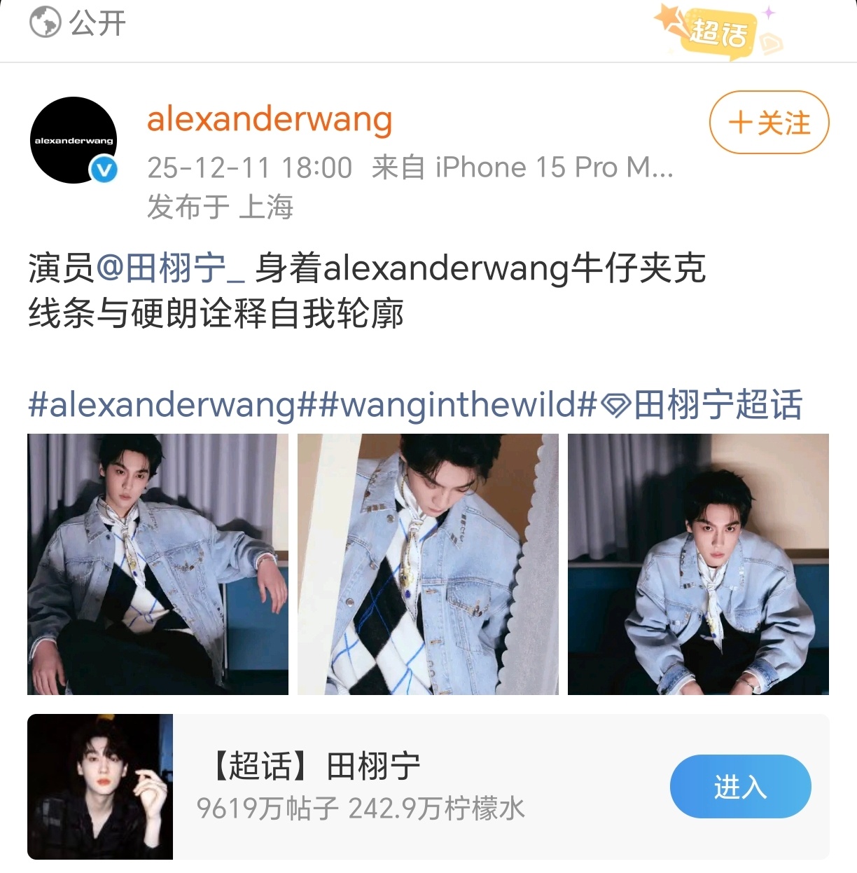 alexanderwang认领田栩宁着装又有时尚感又带货,各大品牌喜欢很正常了