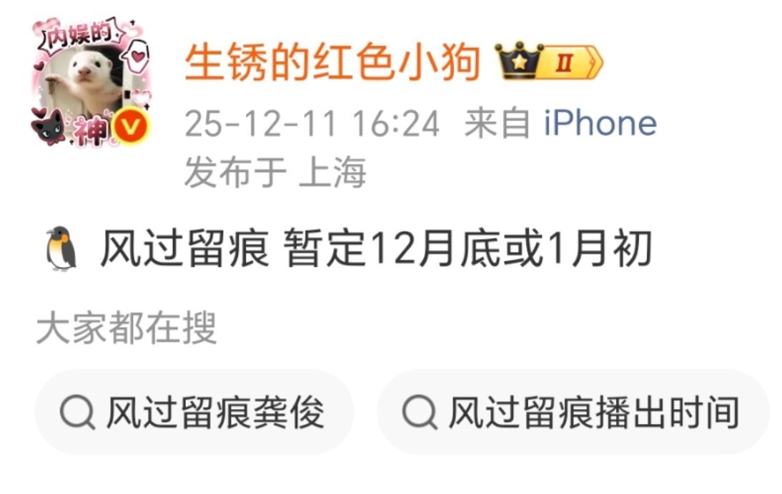 龚俊《风过留痕》12月底或者1月初上线叶谦要来了
