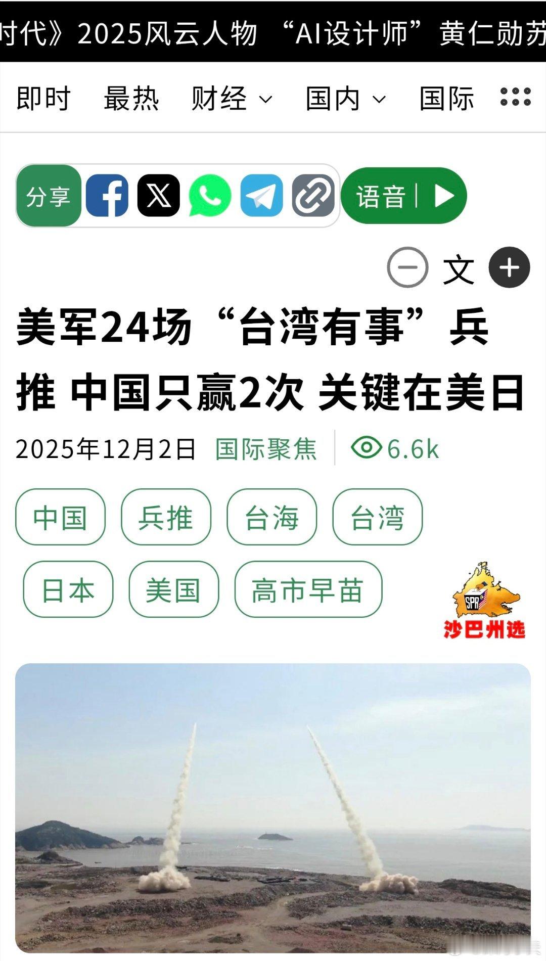 美国兵推的中美台海战争,美国总是输,福特级航母每次都被击沉,连国防部长都抱怨。日本兵推的中美台海战争,只要日本参战必赢,中国成功统一台湾两次,是日本保持所谓中立不支持美军,才导致美军战败。也不知道,是日本了解美军的实力,还是美国了解美军实力呢?日本:八格!你们美国哪有我日本了解美军,爹地必胜!人民空军双语海报喊话日本日专家称中国雷达远超日本