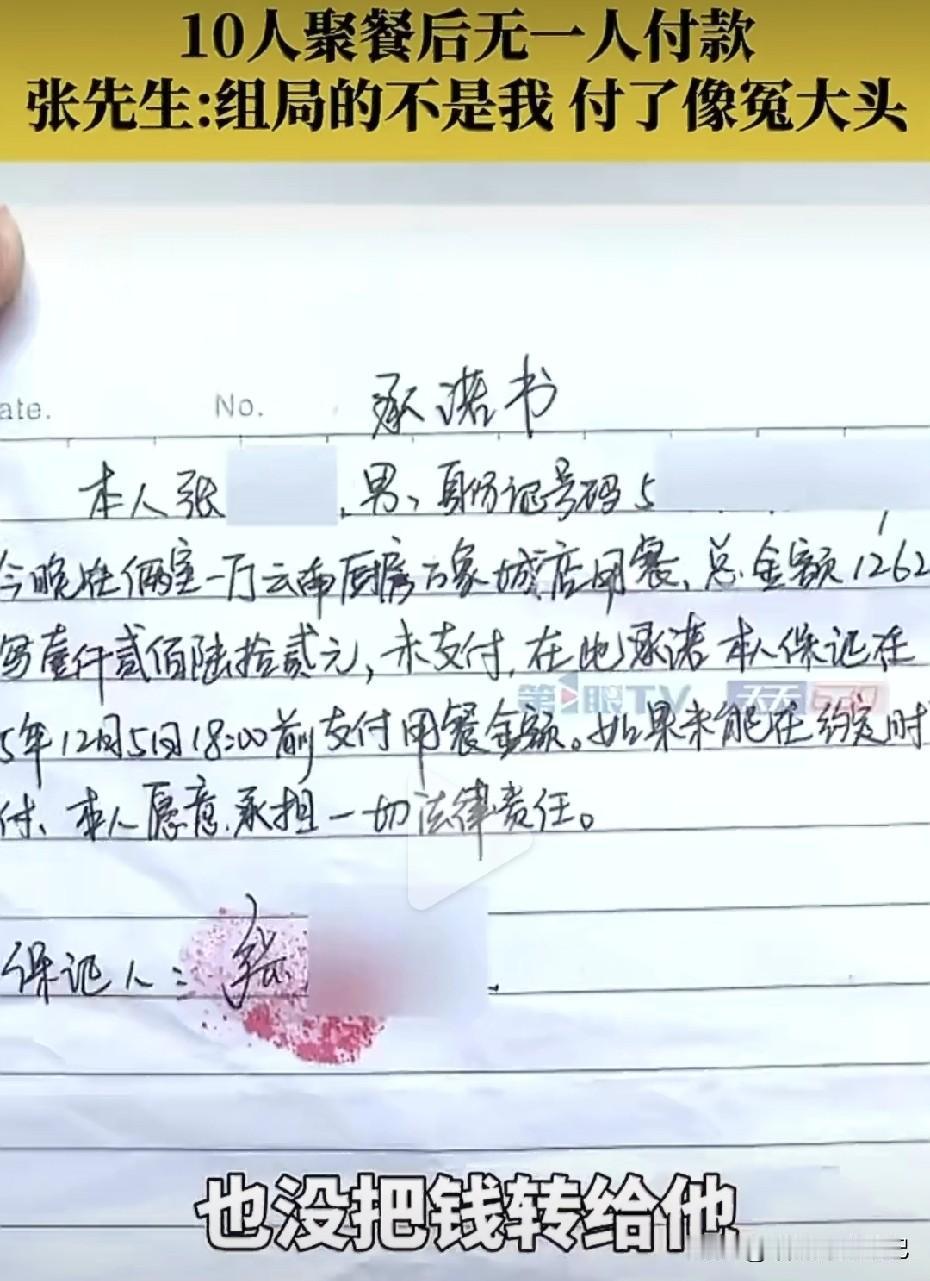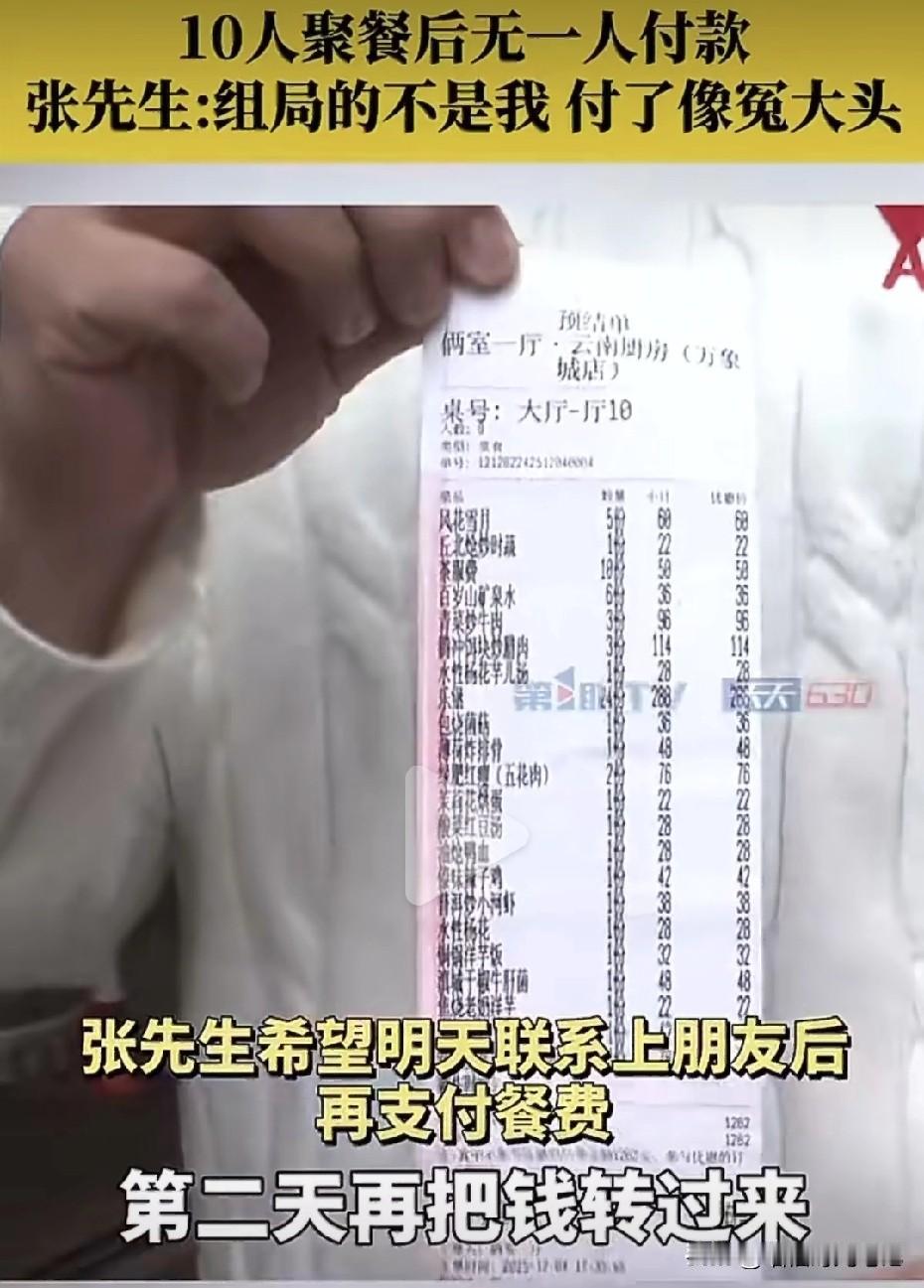10人聚餐,9人开溜。话说,重庆九龙坡,一桌10人酒足饭饱,结果尿遁、接电话、拿快递……9个人花样“跑路”,只剩张先生被老板一把薅住:兄弟,1262元,谁买单? 张先生当场傻眼:我就是被朋友喊来“凑个数”,怎么转眼成冤大头?老板报警,民警把“组局者”电话摇来,对方,“我也没钱,得去筹。” 得,身份证押店里,承诺书签字画押,第二天乖乖送钱。结果第二天集体失联,张先生直接原地裂开。律师说:谁签字谁买单,先垫钱再去找那9个“飞毛腿”慢慢追。 别急着笑他傻,这场景也许我们都遇过? 有人带“胃”来,没带钱包; 有人喝最烈的酒,跑最快的路; 有人把“下次我请”当万能护身符。 饭局一开,手机一响,“家里出事”“老板催”“娃发烧”三连招。 1262元拆到每人头上也就126块,却照出9张逃单的脸:占小便宜的样子,真丑。 法律上谁签字谁买单,人情上谁留下谁背锅。张先生委屈,老板更委屈:开店不是开盲盒。于是报警、写承诺书、押证件,流程走全套。 把单买了再AA,不是见外,是给彼此留退路; 把逃单的人拉黑,不是绝交,是给社交圈消毒。 别让一顿饭,吃成社交事故。也许,能一起涮肉的人很多,但肯一起买单的人才值得深交。