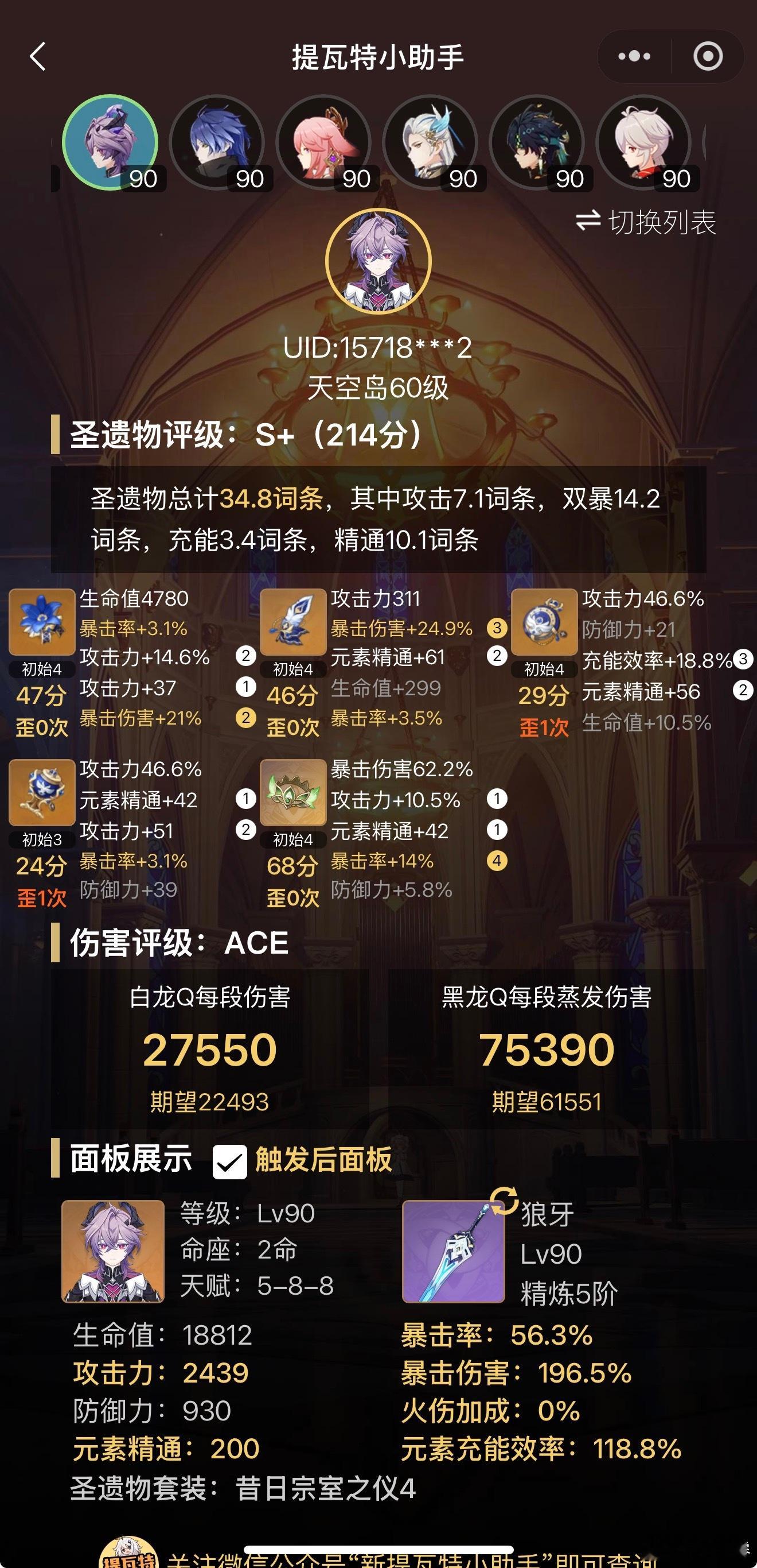上周抽了 二命后,最近都没时间玩今天做完任务,拿到 新衣装,也升了 90 级天赋还没升,随手配了套圣遗物(图2)没算毕业各位原神玩家抽杜林了吗?想一起玩的可以加我~UID 157187332