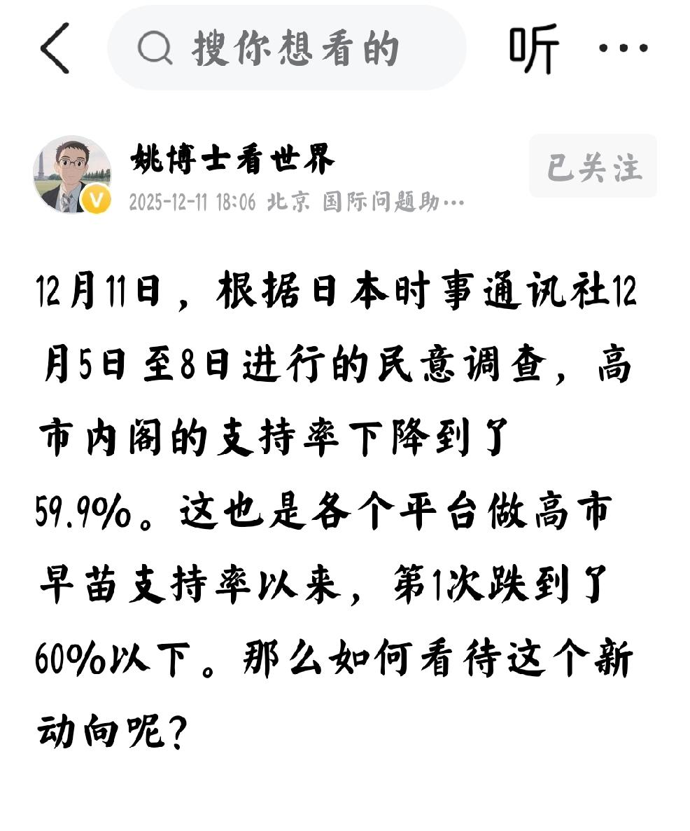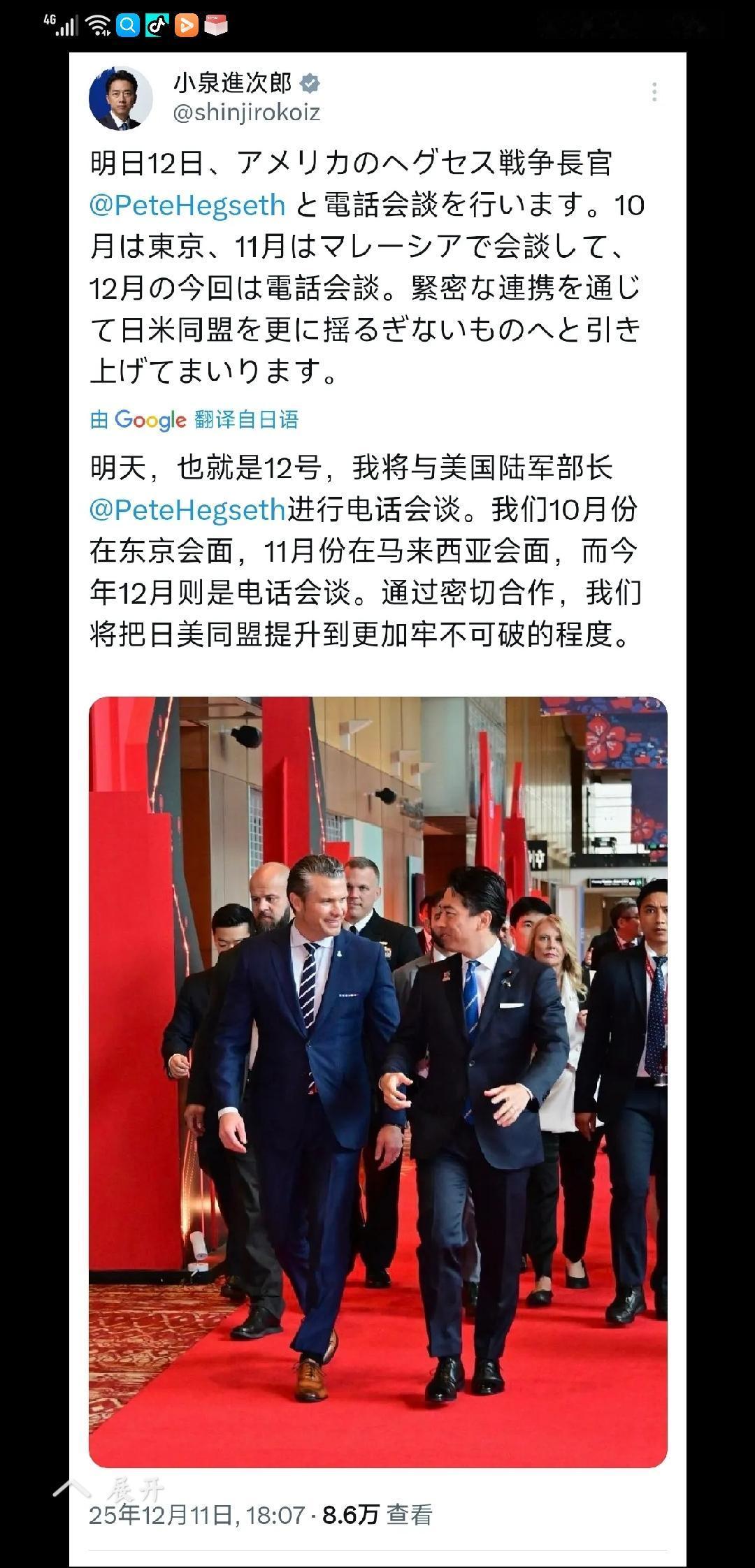 12月12日,当下中日焦点? 个人观点:当下的日本在任领导层动态信息是第一领导人支持率下降并外交呼吁,寻求美国总统特朗普的支持。防卫大臣寻求美国战争部长的支持。 这些表面信息都是徒劳的挣扎,都在预示着当下领导层面临着集体下台的危机。可是这不是我们要解决的焦点。 现在是预防日本现任领导层疯狂恶意,挑拨抹黑,准备被迫整体辞职。换一届政府,换一任首相,打算重新开始,延续外交模糊状态,摆弄话术,不承认,不认同对周围国家造成巨大伤害,准备以鞠躬道歉,敷衍了事,准备用投资补偿(实际是低息贷款,而且必须是日本政府指定机构来进行各种经济活动)的方式,结束所有外交冲突。 现在的焦点是日本不接受,不打算,不承认战败国的责任与义务。背信弃义,撕毁承诺。中国当初免除日本的战争赔偿,就是要让日本承认台湾是中国的一部分。当时的日本为了不赔偿就承诺了,而现在日本撕毁了承诺。 现在是痛打落水狗的时候。
