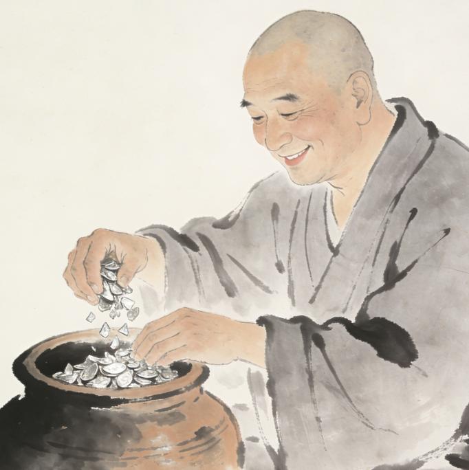 乾隆年间,北京城西的柏林寺有个叫了尘的和尚。这和尚有点倔,有点闷,是寺里最不起眼的一个。可就是这么个闷葫芦,竟攒下了十两白银,更奇的是,这银子后来惹出一段匪夷所思的怪事。 话说这了尘和尚,是个实心眼的。 每天天不亮就起来扫地、挑水、种菜、做饭,直接把寺里的粗活累活他全包揽了。 那些香客们施舍的散碎银子,他从不乱花一文,要么换成粮食接济山下穷人家,要么就小心翼翼地收进一个陶罐里。 “了尘,你攒这些银子做啥?咱们出家人,生不带来死不带去的。”师兄弟们常打趣他。 然而了尘总是憨憨一笑,也不辩解,依旧把铜钱、碎银跟宝贝似的藏好。 几十年光阴如水,陶罐里的碎银竟凑足了十两。 后来了尘特意请银匠将银子熔铸成一个沉甸甸的银锭,装在荷包里,层层包裹,贴身藏在胸前,夜里睡觉都要摸着了才踏实。 然而没人知道,这十两白银,是他藏了半辈子的心愿。 在山脚下有个破旧的学堂,教书的是个白发苍苍的老秀才。 几个娃娃跟着他念书,屋顶漏雨,四壁透风,连像样的束脩都交不起。 了尘每次下山挑水,总要在学堂外站一会儿,看着那些冻得通红的小脸,心里很不是滋味。 有一年冬天,雪下得特别大,压塌了学堂的后墙。 当时老秀才望着废墟直叹气,娃娃们眼巴巴地看着,学堂眼看就办不下去了。 消息传到寺里,和尚们议论纷纷,都说可怜,可寺里也不宽裕,实在无能为力。 然而了尘在人群里,手紧紧攥着胸前的荷包,像是在思考着什么。 一边是半辈子的积蓄,一边是娃娃们无书可读的茫然。 然而就在天快亮时,他披衣起身,揣着荷包悄悄下了山。 找到老秀才,他掏出那层层包裹的银锭,塞过去:“先生拿着,修学堂要紧。” 老秀才惊得连连摆手:“使不得,这可是你几十年的心血啊!” 了尘只是憨憨地重复:“娃娃们不能没书读。” 最后老秀才也没有推辞,毕竟他们是真的需要这笔钱。 学堂用这十两银子修好了墙,换上了新瓦,娃娃们的读书声又响了起来。 虽然了尘胸前的荷包瘪了,但是心却踏实了。 他依旧每日劳作,听着山下传来的读书声,脸上常有笑意。 然而,命运似乎偏要考验这憨厚的和尚。 约莫一年后,了尘和尚那贴身收藏的、空空如也的荷包,竟又变得沉甸甸的。 原来是一位感激他的香客硬是布施了一锭十两的新银,让他务必留下傍身。 了尘推辞不过,又将这新银锭揣回了怀里。 可这一次,心境却大不同了。 他变得疑神疑鬼,时常偷偷摸胸口,生怕这失而复得的银子又飞了。 结果越怕什么越来什么,一天清晨,他一摸胸口,荷包果然又空了。 这下可要了了尘的命。 他像丢了魂似的,到处找,逢人便问:“见到我的银子没?十两的一个大银锭!” 师兄弟们起初还同情,帮他找,日子久了,见他茶饭不思,形容憔悴,只会反复念叨那十两银子,都觉得他魔怔了。 “了尘,钱财是身外之物,看开些罢。” “我看他是钻钱眼里了,哪还有点出家人的样子。” 了尘什么也听不进去,忧思成疾,竟一病不起。 当时全寺的人都知道他是为丢银子病的,没有不替他惋惜,也觉得他这执念太深。 那寺里的茅厕又深又宽,积满了污秽,按惯例该雇人清理了。 这天,清理的工人掏粪时,竟在粪坑底下挖出个稀罕物,一只蛤蟆。 奇怪的是它个头有升斗那么大,更奇的是,它两只前爪紧紧抱着个东西不肯松。 工人费了好大劲掰开蛤蟆的爪子,发现那竟是个被污物浸透的荷包,里面端端正正包着一锭银子,一称,正好十两! 这数九寒天,蛤蟆怎会活在粪坑里? 银子又怎会到了蛤蟆怀里? 大家都猜这准是了尘丢的那锭,便拿着荷包和银子去他禅房。 “了尘,了尘,你看这是不是你丢的银子?” 了尘本是奄奄一息,闻声睁眼,一见到那熟悉的荷包和锃亮的银锭,竟“嚯”地一下从床上坐了起来,一把将银子抱在怀里,病瞬间就好了大半。 众人正啧啧称奇,再回头看那蛤蟆,却已不知去向。 当时有见多识广的老僧感叹道:“这哪是蛤蟆,这是了尘的心魔所化啊!” 也是经此一遭,了尘和尚像是彻底开了窍。 他捧着那锭失而复得的银子,不再贴身收藏,而是看了又看,然后长叹一声。 他再次下山,这次,径直将银子交给了学堂的老秀才,嘱他多买些书籍纸笔,彻底断了念想。 从此,了尘和尚像是换了个人。 不再闷着头一味苦干,脸上常带着豁达的笑。 但是他依旧勤劳,但更加随缘自在。 有人问起蛤蟆抱银的奇事,他往往一笑而过:“执着是粪土,放下是净土。” 那锭白银,最终铺就了山里娃娃们的求学踏,也照见了了尘和尚内心的修行的轨迹。 钱财本身无善恶,能用来解难济困,便是它的价值。 而比积攒银钱更重要的,是守护内心的清净与慈悲。 这就是心境。 主要信源:(《夜谭随录》)
