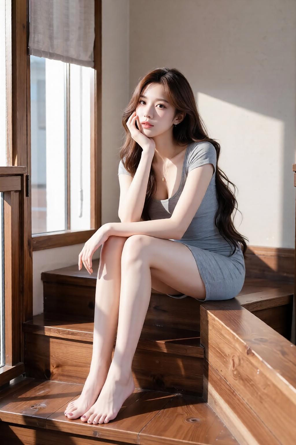 优雅少女,楼梯上的沉思时刻