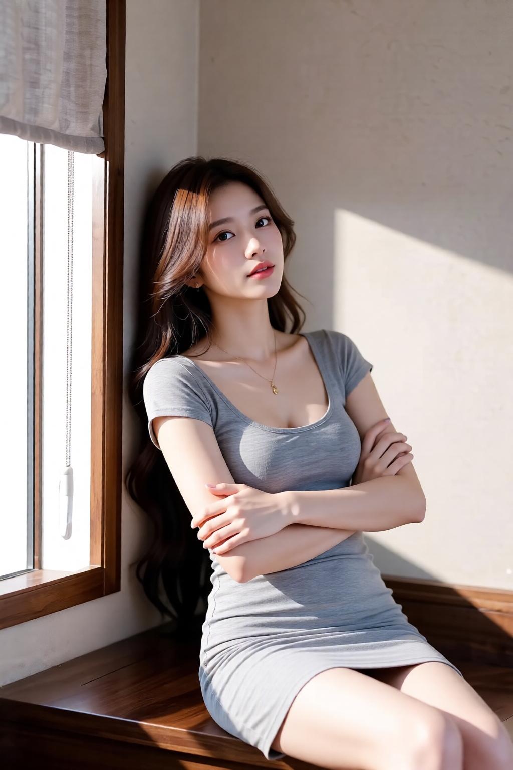 阳光洒进来的午后,少女坐在窗边,温柔而宁静。