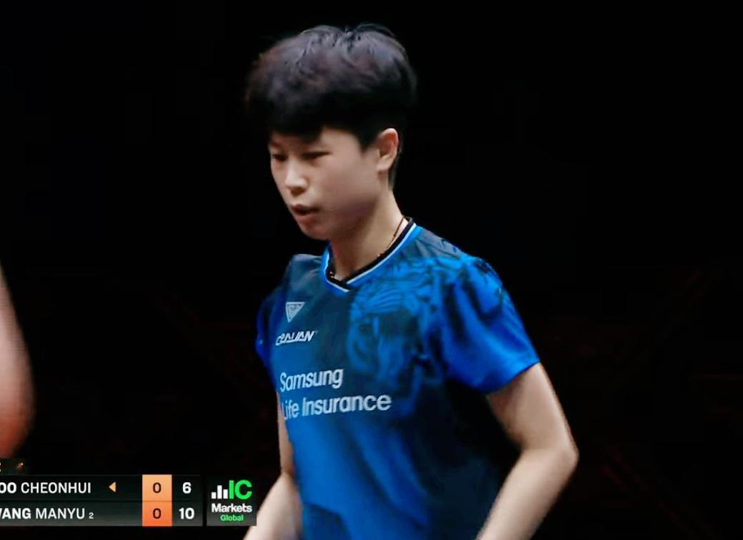 我去!鳗鱼又封神了,从3:8落后,直接连赢8球, 11:8拿下。 第一局鳗鱼反手打爆朱千曦了, 所以小朱只能发正手位短球, 鳗鱼一搓, 小朱容易挑打。 第一局鳗鱼11:7拿下。 第二局小朱4:0开局, 8:3继续领先, 以为可以扳回一局, 结果鳗鱼发力, 连赢8球,11:8拿下, 封神了,哈哈