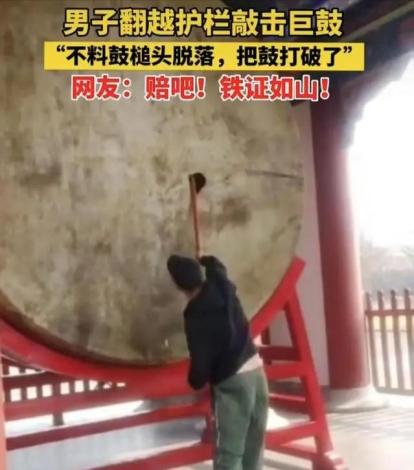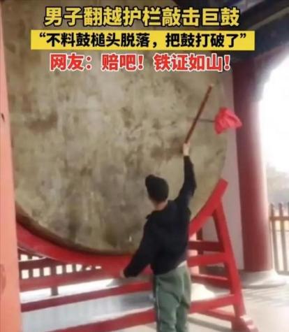 "这下玩大了!"男子翻过护栏那刻,谁也没想到南宋古鼓会被敲出个窟窿。 景区开口