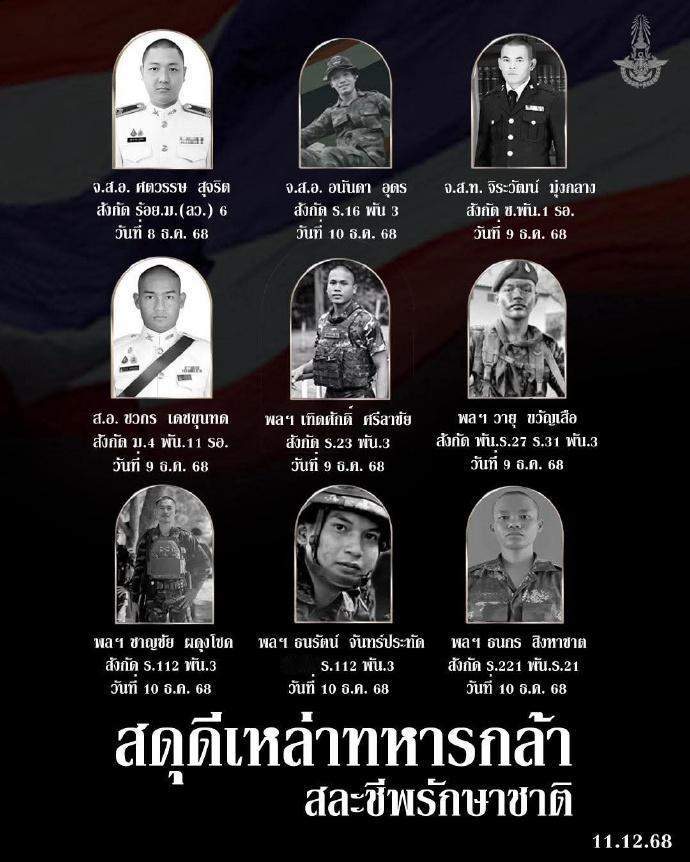 当地时间2025年12月11日,泰国陆军第二军区举行新闻发布会称,从12月7日,泰国与柬埔寨军队发生冲突以来,泰国军队,泰国陆军第二军区造成的柬埔寨军队损失,包括:打死柬埔寨军队102人,摧毁6辆柬埔寨军队T-55坦克,摧毁2辆BM-21火箭炮,击落无人机64架,摧毁反无人机干扰系统一套,而泰国军队第二军区阵亡9人,而泰国军队整体阵亡人员在12月11日,已经上升到了12人。 泰国陆军第二军区随后用泰语,柬埔寨语(高棉语),汉语,英语,法语,五种语言发布了战况通报。按照泰国陆军第二军区发布的汉语通报:“12月11日22时42分,柬埔寨军方首先发起攻击,动用火炮、迫击炮等火力支援武器,对泰国军队阵地实施炮击,并派遣无人机对泰国军队的关键地带进行侦案活动。面对敌方攻击,泰国陆军第二军区依据合法自卫原则,已采取必要且相称的防御性反击行动”,“泰国军队运用火炮及迫击炮对敌重要军事目标实施精确打击,导致柬埔寨军队的多个阵地遭受显著损失,包括摧毁了柬埔寨军队运输载具、压制其火力阵地,并有效打击其前沿军事据点”。 按照泰国陆军第二军区的意思,除了调动泰国军队,泰国陆军第二军区已与泰国地方行政机构、民事志愿者、村庄治安队及民防志愿者密切合作,全面落实巡逻、检查哨、村庄安保、财产保护及监控可疑人员等多项措施,“以最大限度确保民众安全与稳定泰国民心”。 按照泰国军队的意思,在12月11日,柬埔寨军队发动了这一次冲突中,最大规模的反击,泰国军队声称,泰国空军出动察打一体武装无人机,摧毁了一批柬埔寨地面部队的武器装备,泰国空军出动察打一体武装无人机的战绩,包括2门BM-21火箭炮和4辆T-55坦克。