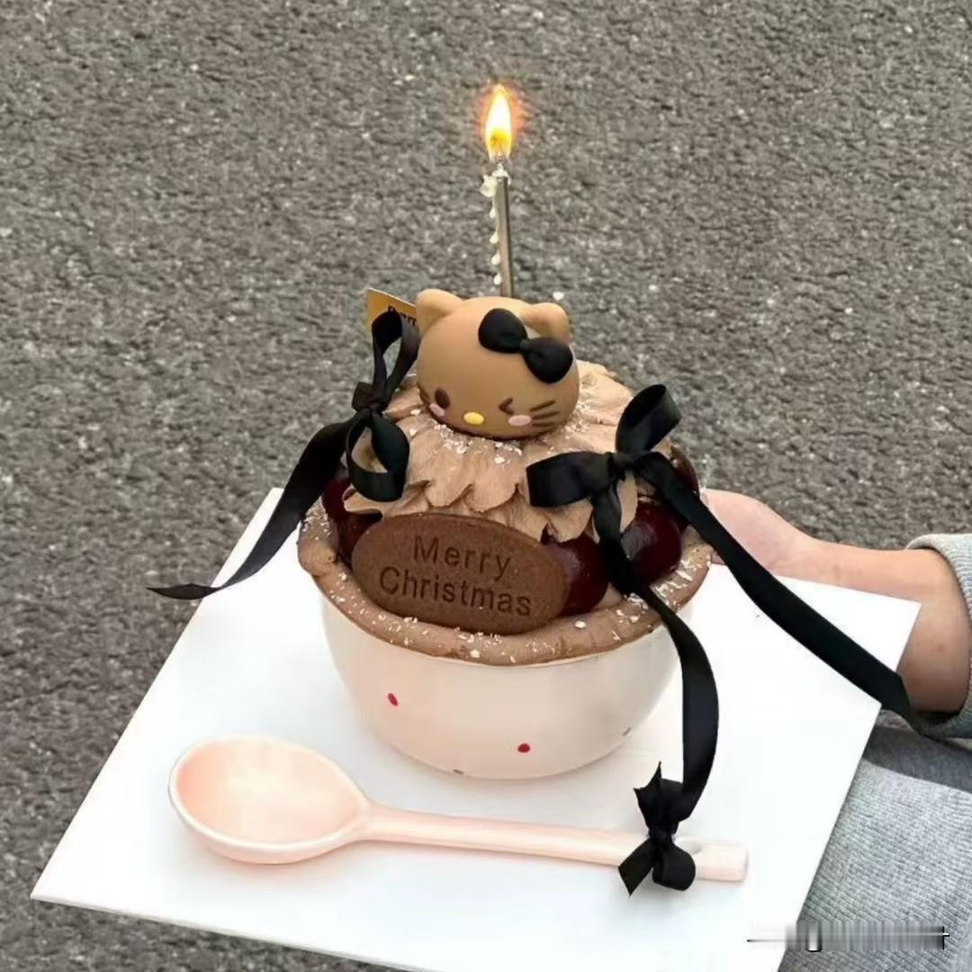 粉Kitty见多了~[耶][耶][耶] 来个黑皮Kitty(巧克力车厘子)~蛋糕