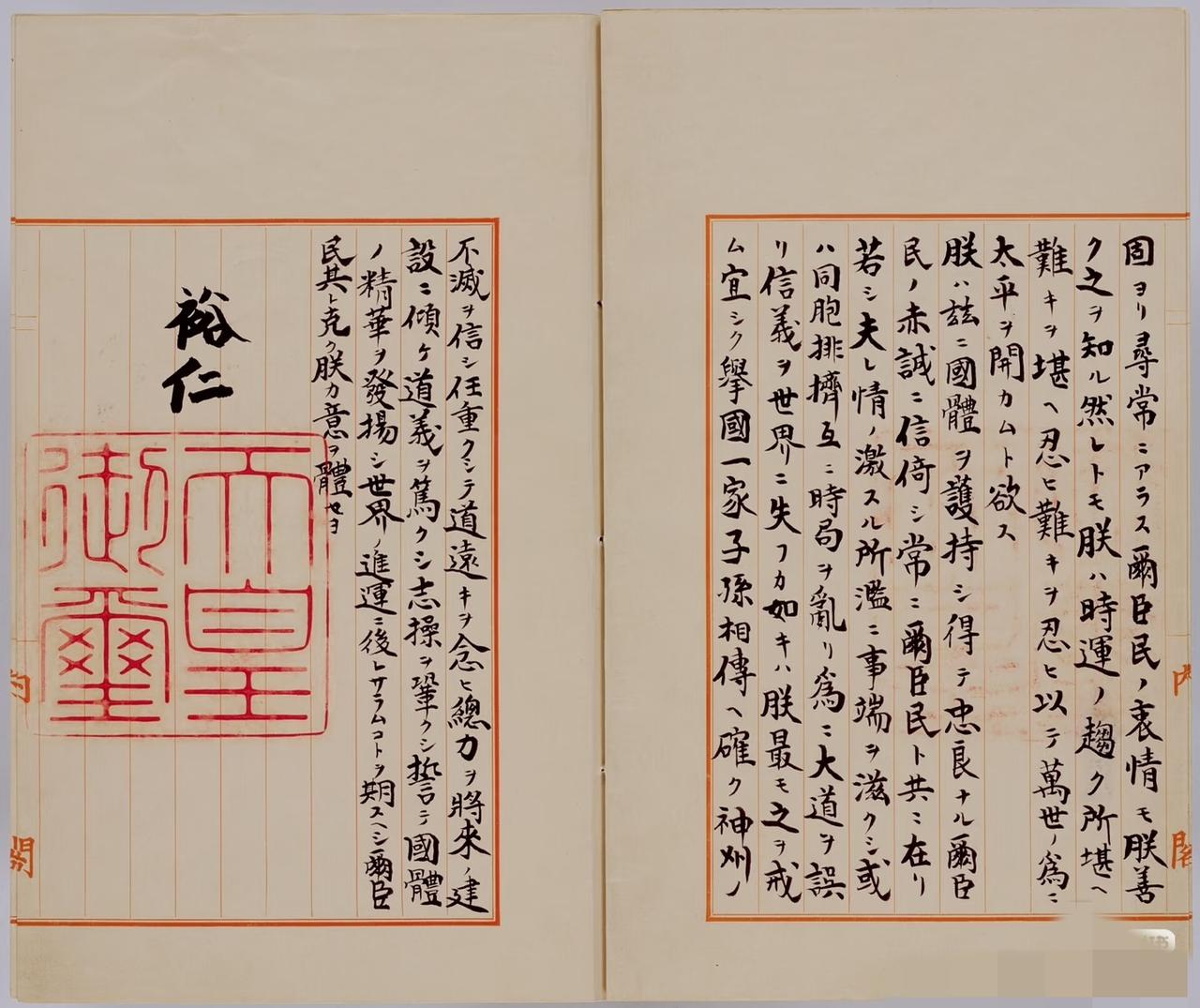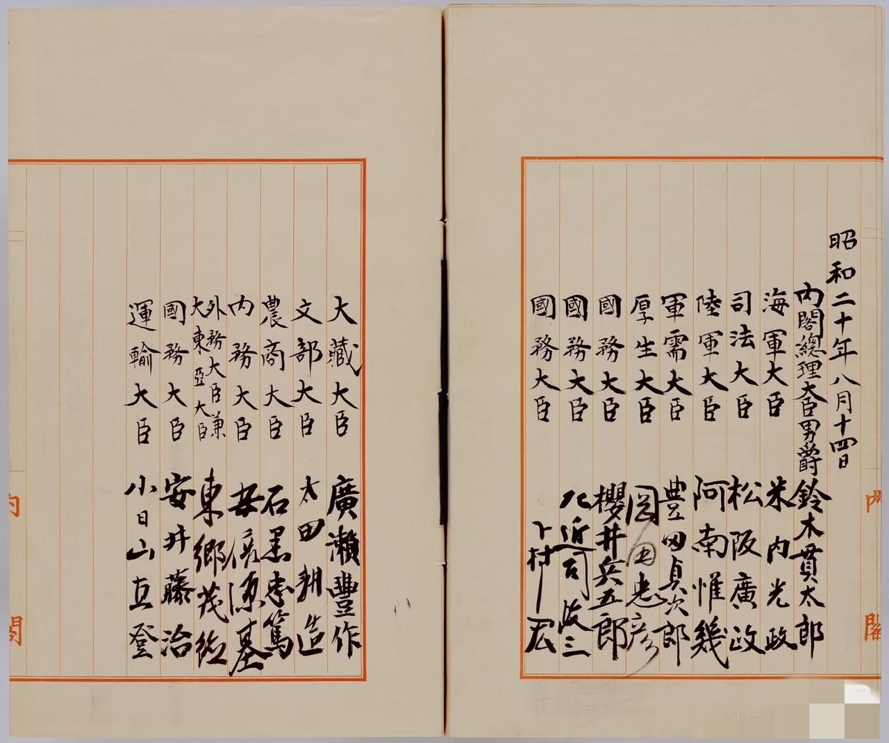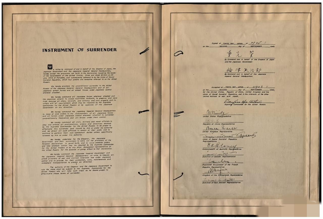 以下分别是1945年日本战败后发布的《终战诏书》、签署《降伏文书》、以及中国战区受降文件。 1945年8月15日,日本天皇裕仁以广播形式发布《终战诏书》,宣布接受《波茨坦公告》,落款“昭和二十年”并盖有天皇御玺。同年9月2日,在东京湾“密苏里”号战列舰上,日本外相重光葵与参谋总长梅津美治郎签署《降伏文书》,向同盟国无条件投降。随后,9月9日,中国战区受降仪式在南京举行,侵华日军总司令冈村宁次向中国陆军总司令何应钦签署投降书,完成中国战区的受降。 我近期创作的内容被官方加热啦!👍你也快来发布一条吧!带