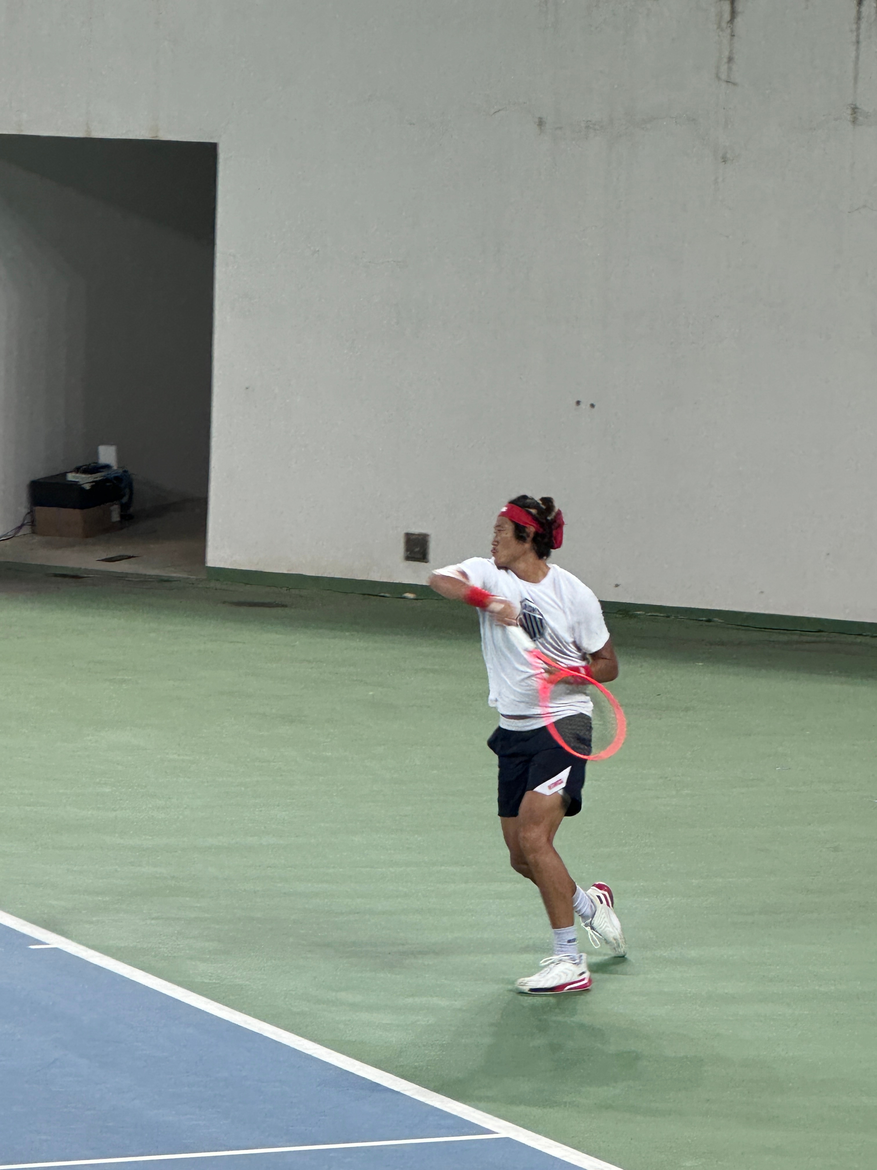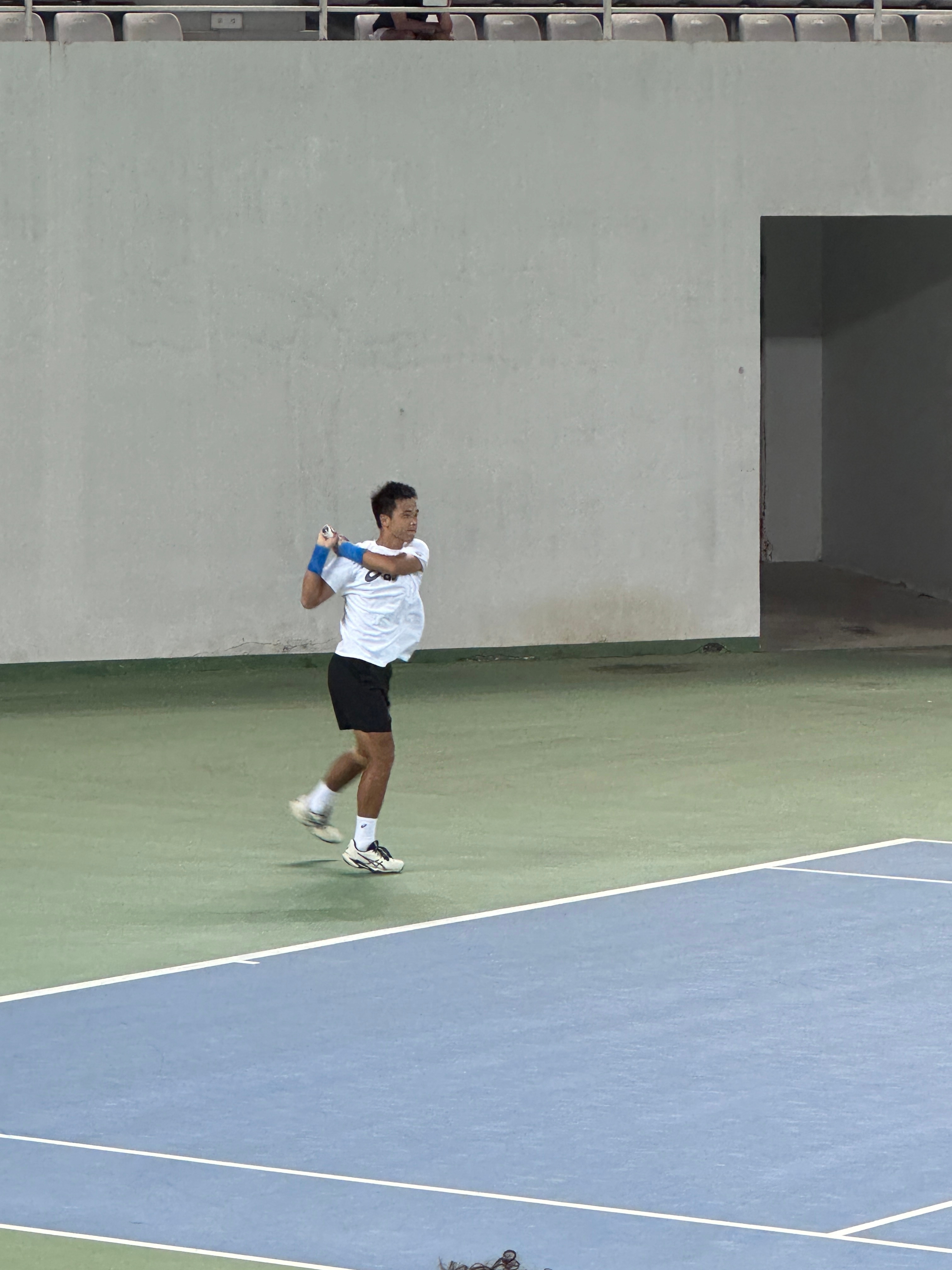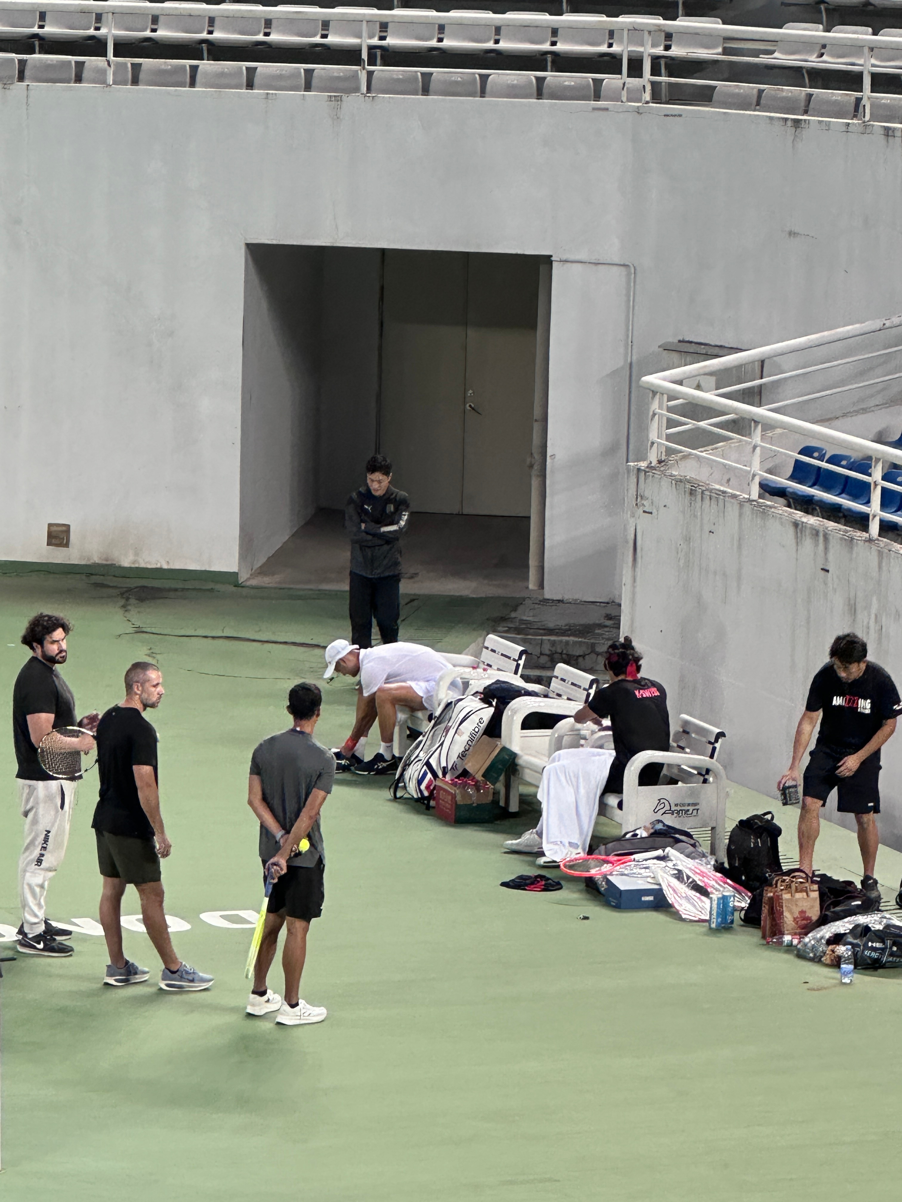 成人营和儿青少年营的营员,今天下午的一项活动安排是在东莞网球中心的中央球场观看职业级的训练赛。刚刚是张之臻对吴东霖,现在是张之臻对孙发京。张之臻那天直播也说了,肩膀基本好了,希望明年能打下一个完整的赛季。日头落了,小风转凉,开了灯接着打。 东莞·东莞市网球中心