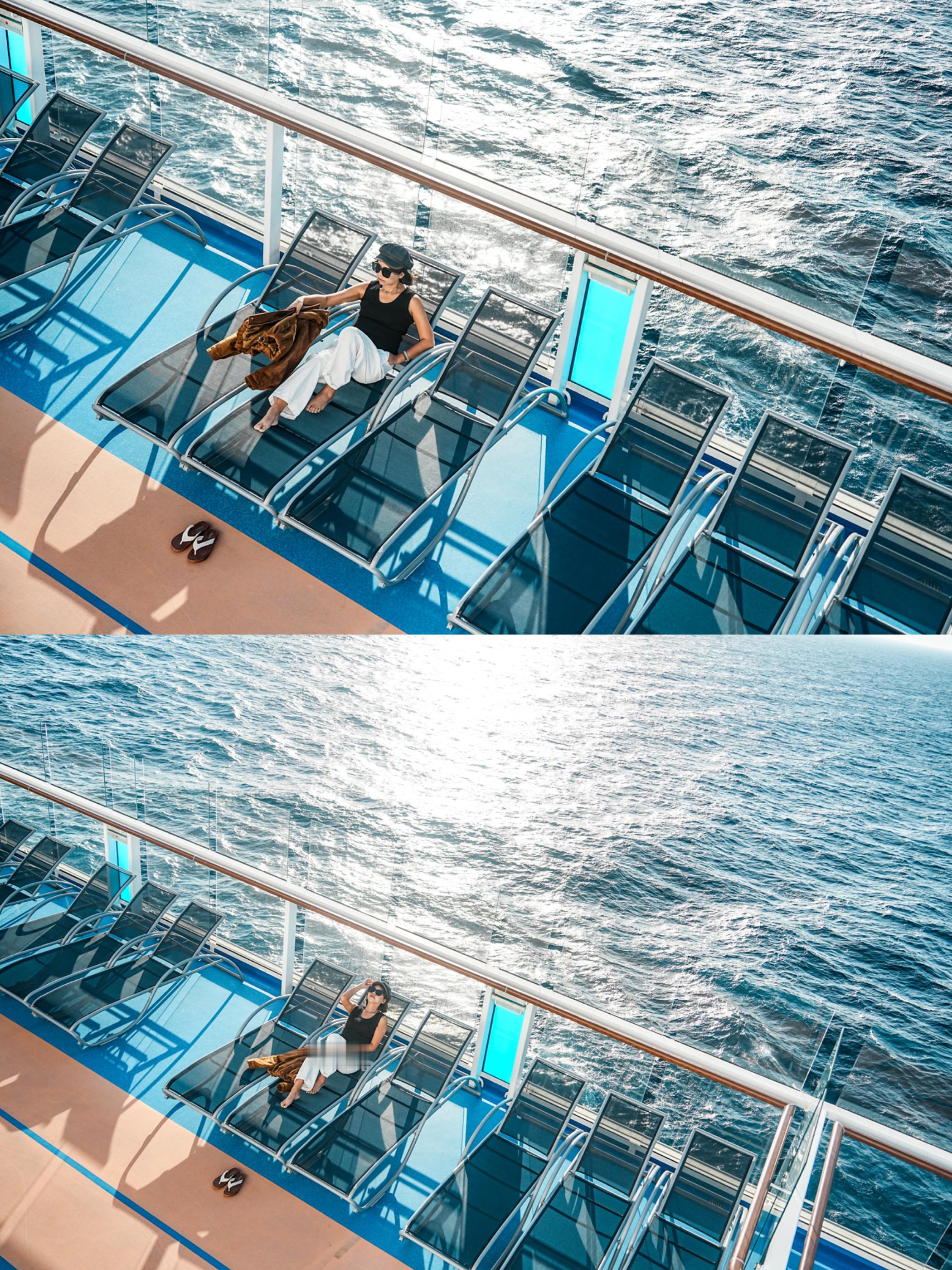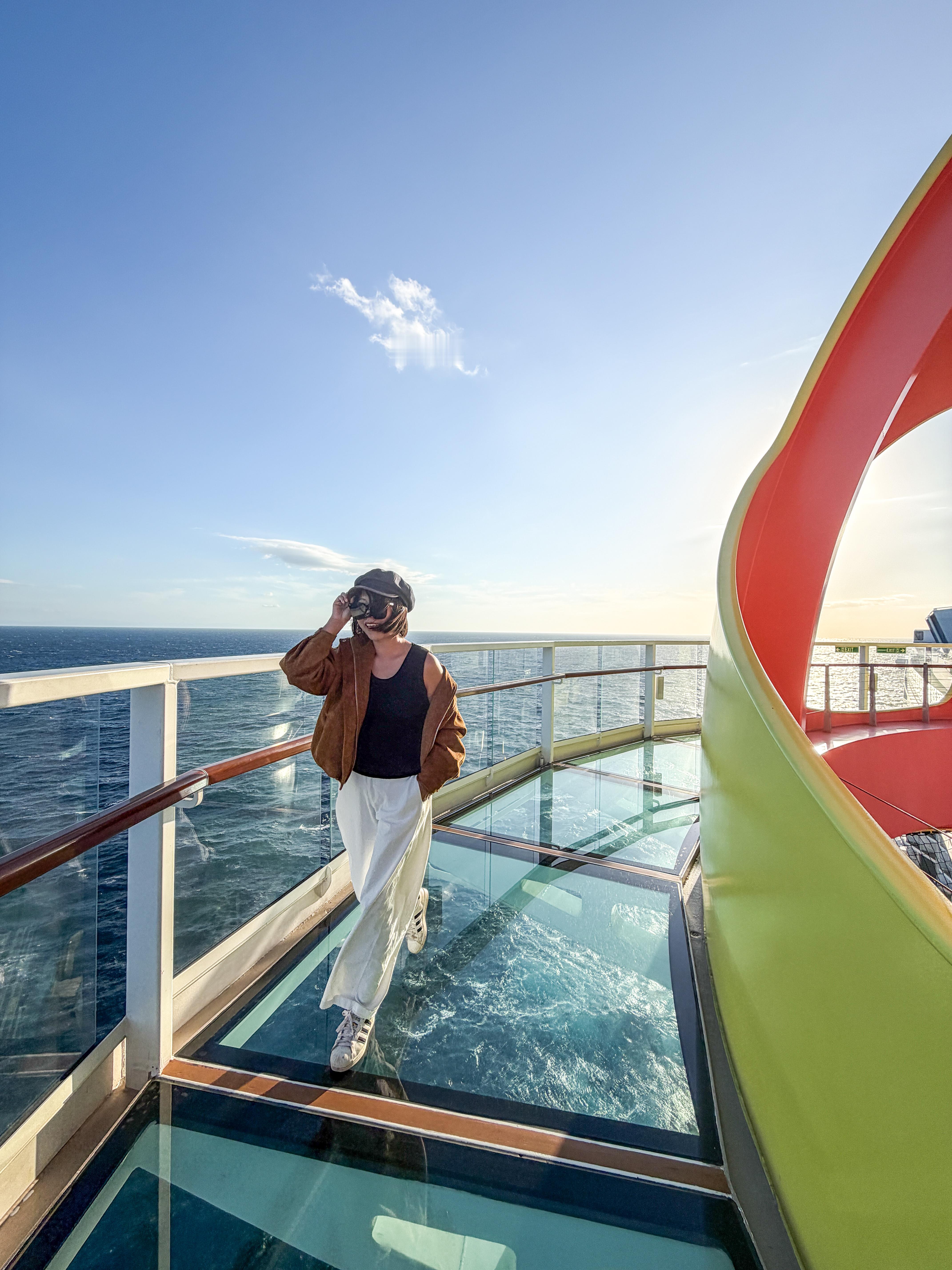 ‼️海洋光谱号全攻略 | 打卡机位+美食清单一次拿捏在皇家加勒比海洋光谱号上的度假日子根本不够用!!白天追着阳光拍大片,晚上抱着美食看演出,海上度假的快乐被狠狠满足了🌊📸 出片打卡点合集(附最佳时间)✔️阳台房:提前叫早餐送房!清晨阳光洒在海面时,对着海景拍早餐ootd,私密性拉满还自然✔️15楼甲板:傍晚5-6点冲!赶上晴天就能和橘子海夕阳同框,风大记得戴帽子防乱发✔️15楼玻璃栈道:悬空探出海平面的震撼谁拍谁知道!蹲拍避开人群,脚下是汹涌海浪,氛围感直接拉满✔️日光浴场:温度超舒服!泳池拍照要趁早,不然全是人~ 躺椅俯拍秒出大长腿,逆光拍更有度假感✔️泳池边:水位线卡大腿、手机放大3倍拍,坐在扶梯旁或泳池边缘,手动溅点水花,元气大片轻松get🍴 必吃美食(免费餐厅不踩雷)✔️主餐厅(3-4F):点餐制yyds!推荐纽约牛排、法国蜗牛和川味萝卜炖牛肉,中式胃也能满足,记得要窗边位,吃饭拍照两不误✔️帆船自助餐厅(14F):菜品超丰富!中西合璧还有东南亚风味,必尝冬阴功海鲜面和精致甜品,靠窗座能边吃边看海上落日🎢 额外惊喜别错过晚上的表演一定要冲!《魅舞今昔》像维密+歌舞青春,《光谱奇侠》《丝绸之路》视觉感拉满,登船就预约准没错~喜欢刺激的宝子,甲板冲浪冲浪🏄🏻♀️、空中跳伞、海上攀岩都安排上,多功能运动馆还能解锁射箭等玩法,运动量直接达标💪Tips:主餐厅晚餐分批次,想自由选时间建议约MyTime模式;餐厅食物可以带回房间,边看海景边吃超惬意~听我的,想一站式懒人度假,就选【皇家加勒比海洋光谱号】!!记得游轮🛳️从香港启德码头出发哦!还可以去香港逛吃一遍再登船🛳️这个游轮很自在 皇家加勒比邮轮 皇家加勒比游轮 海洋光谱号