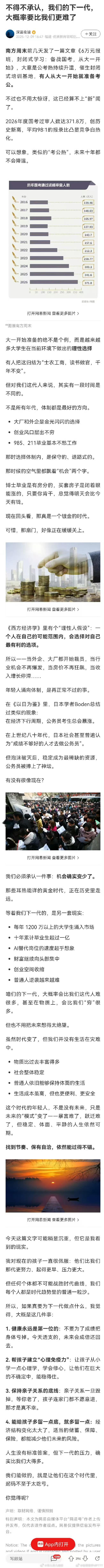 不得不承认,我们的下一代大概率要比我们更难了 ===桂哥评(原创文章):每一代没有不难的。5060708090,代代都难。14亿人参与竞争,谁都想找到好一点的位置,招聘单位,说不想招聘最好的,效率高自觉省事的员工呢。也正是因为高效率,高素质的员工,咱们也享受了非常好的社会服务。但随着社会进步,国家都强大,咱们每个人也都从中受益。是智能手机不好玩,微博内容不精彩?还是网购不方便,外卖不及时?网约车不便利?还是新能源电动车不好开?几十年前有电话,有互联网,有异动终端,有这么多精彩的东西吗?现在每个人没事,碎片时间,都能玩玩手机,还有人工智能,医学,医药也进步了很多,保护了老百姓的健康。咱们也要看到时代的进步,新的机会,新的便利,新的趋势,好的方面。咱们下一代也继承了上一代的不少好的品质和财富。不管如何,反思,乐观,积极的心态,学习进步的心态,人生才会过的更好一些。目前,咱们国运是最好的,没有之一。多反思自己的不足,多学习提升自己。咱们社会不断进步,一代人会比一代人过的更好,这是肯定的。咱们才不想回到809000年代呢,2025年,相比过去,真的不知道好了多少。好玩的东西都玩不过来。微博精彩内容都刷不完。全网热点共创计划强者思维