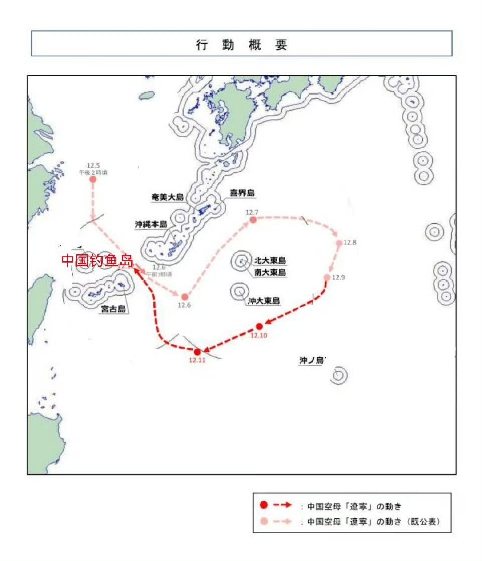 12月12号,辽宁舰航母战斗群完成远洋训练,通过宫古海峡返回东海。12月6号~12月12号训练期间,辽宁舰航母战斗群绕行大东群岛一圈,首次沿琉球群岛与大东群岛之前的海域北上,共进行舰载战斗机与舰载直升机起降约260架次。烽火问鼎计划