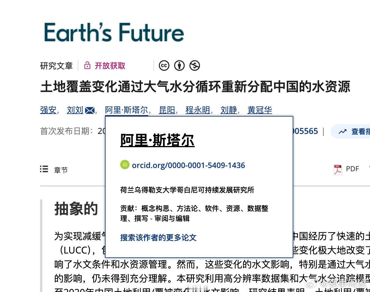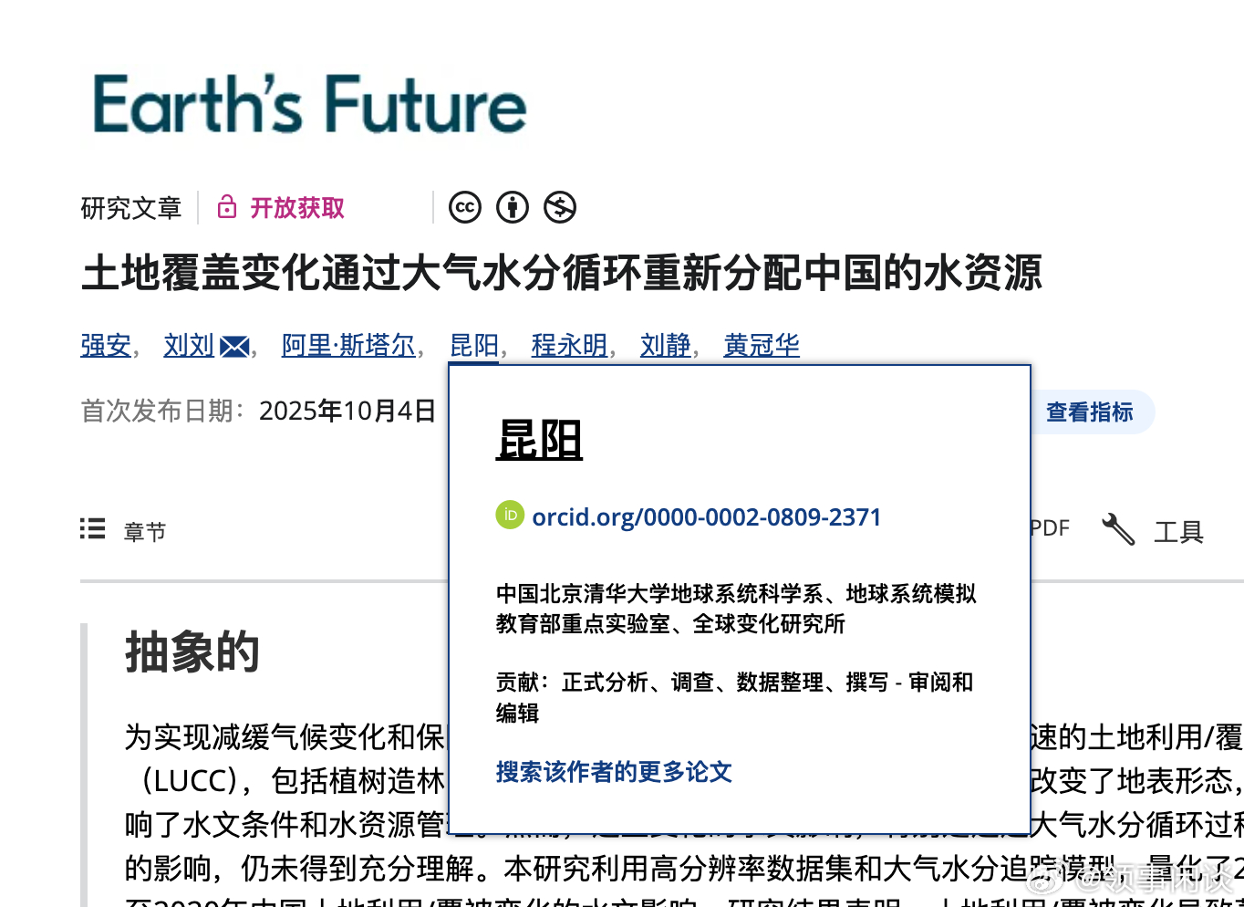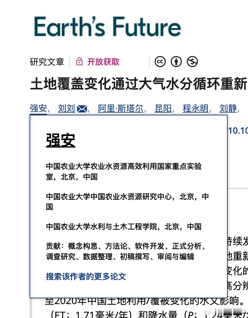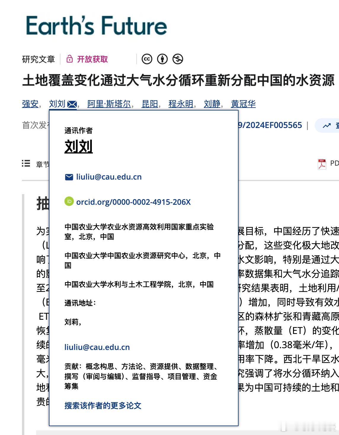 【中国种植了780亿棵新树——却严重扰乱了其水循环】[亚马逊的树木砍不得,美加的大火是自然选择,中国的绿化有害......这些学校是吃饱了撑的么?荷兰一个人带着2所中国高校6个人搞出的“学术文章”,试问,拿了荷兰多少钱?他们做不到的你做到了就是原罪,建议罚这些人去西北种树](PopularMechanics)中国在建造事物方面尤为擅长,这早已不是秘密。世界最大的水坝?在中国。最大的高铁网络?同样在中国。最大的风电场?中国。太阳能阵列?阿根廷?真的?不,也是中国。最大的古代地标?你懂的。在建设狂潮中,中国也在持续发展。受最后一项基础设施成就的启发,中国自1978年起启动"三北防护林带"工程,即"绿色长城"计划,旨在防治水土流失、减少沙尘暴。据官方媒体宣布,这项工程已于去年全面竣工。据路透社报道,中国新增造林面积达11.6万平方英里,使全国森林覆盖率从1949年的10%提升至2024年的约25%。但《地球未来》期刊最新研究显示,这些新增林木(据估算自80年代初已达780亿株)对中国水资源分布产生了意料之外的影响。@ 天津大学、@ 北京中国农业大学 和荷兰乌得勒支大学的科学家发现,2001至2020年间,植被增加导致中国东部季风区和西北干旱区的水资源减少。据《生活科学》报道,鉴于这些区域约占中国国土总面积的74%,这一发现意义重大。研究指出,"绿色长城"等绿化工程,以及1999年启动的"退耕还林"和"天然林保护"计划等造林举措,均加剧了蒸散作用——该术语融合了蒸发与蒸腾作用(植物通过气孔释放水蒸气的过程)。研究作者指出:"这些变化导致降水模式改变,更多水汽被输送至青藏高原,使该地区水资源可用性提升。相反,中国东部和西北部地区水资源可用性下降,其中西北部损失最为严重,因大量水汽转移至青藏高原。"通过研究这些快速土地利用/覆盖变化(LUCC),作者还指出某些区域转变——如草原转森林或农田转草原——以不同速率影响着蒸散发、降水率和水资源可用性。例如,草原转森林增加了蒸散发和降水,但对水资源可用性产生了负面影响。遗憾的是,中国水资源分布与人口分布存在严重错位。研究显示,全国北部地区约聚集46%人口及半数以上耕地,但水资源可利用量仅占全国20%。作者强调,未来规划造林计划时必须充分考量这些改变后的水文循环规律。作者写道:“我们的研究结果表明,土地覆盖变化能够在不同区域之间重新分配水资源。理解这些影响对于规划中国的可持续土地和水资源管理至关重要。”[Yahoo和有关论文后的评论]· 所以气候变化是人类的错,是中国人干的。· 无论如何,如果该地区曾经是森林,他们试图让自然回归更自然状态的努力是值得称赞的。· 这个假新闻……事实上,植树有助于灌溉,水流会更强、更好……撒谎的混蛋。· 植树比砍树难多了。· 如果这项研究仅限于这篇优秀文章的内容,那它就是不完整的。亚马逊雨林已被证明需要连续的森林才能让水分迁移到更高的海拔。森林斑块之间被皆伐(大面积砍伐)的区域,已经阻止了水分向上迁移到更高海拔的森林。因此,蒸散作用(ET)对于本地或附近的森林降水至关重要,即使其中一些水分可能会逃逸到更高的高度,从而形成更远处的降水。然而,这证明了生物圈是一个综合系统,至少在水文方面是如此。可以说,全球范围的降水正受益于中国的植树造林,或者任何植树造林项目。· 总的来说,这不一定是一个糟糕的意外后果——水分通过(免费的)风被输送到了更高海拔的地面,在那里它进入了地下水循环,可以被积累,并且理论上,可以通过重力输送(引流)到需要的地方,同时也可用于水力发电。这可能需要从青藏高原的边缘向北方修建大规模的输水渠,但如果说有哪个国家能做到,那就是中国。对于那些从海洋带来过多湿气降水的地区,当然应该促进蒸散作用。降水形成于湿润空气遇到较冷环境的地方,但凝结同时也会提高该环境的温度。因此,云层卸载水分的界线被推向了离海岸更远的内陆。当然,这种机制覆盖的最大距离是有限的。绿色植被有助于延长这个距离。· 中国正在做一件伟大的事。澳大利亚应效仿中国。我们拥有大片可退耕还林的土地,这有助于降低大陆温度、减少二氧化碳排放、助力实现气候目标,还能大幅扩张野生动物栖息地。· 中国的燃煤电厂用于生产钢铁。这些钢铁被出口。最终,这些钢铁通过印度和越南等国家流入西方。所以,别再摆出一副高高在上的姿态了。西方并没有减少其碳足迹。它只是将碳足迹外包给了中国、印度、越南、巴西、哥伦比亚以及许多其他你们都瞧不上的国家。· 煤炭对中国而言是一项必要的投资,直至其可再生能源达到临界规模,否则中国将受制于西方国家,后者垄断了天然气等更清洁的能源。这关乎国家安全。此外,中国在可再生能源领域的投资,如太阳能和风能,比地球上任何其他国家都多。同时,中国也在迅速扩大其核能发电能力。· 我肯定这和人口过多、巨大的混凝土大都市,或者用那些可怕的大型水坝在大规模地阻挡和试图控制水流,甚至据说稍微影响了地球的自转,一点关系都没有。不,让我们来指责树木吧。都是它们的错……