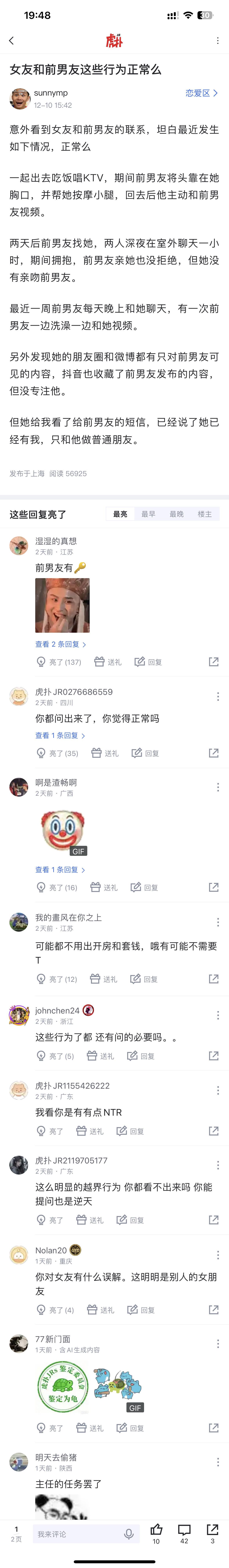 女友和前男友这些行为正常么?上虎扑搜恋爱区