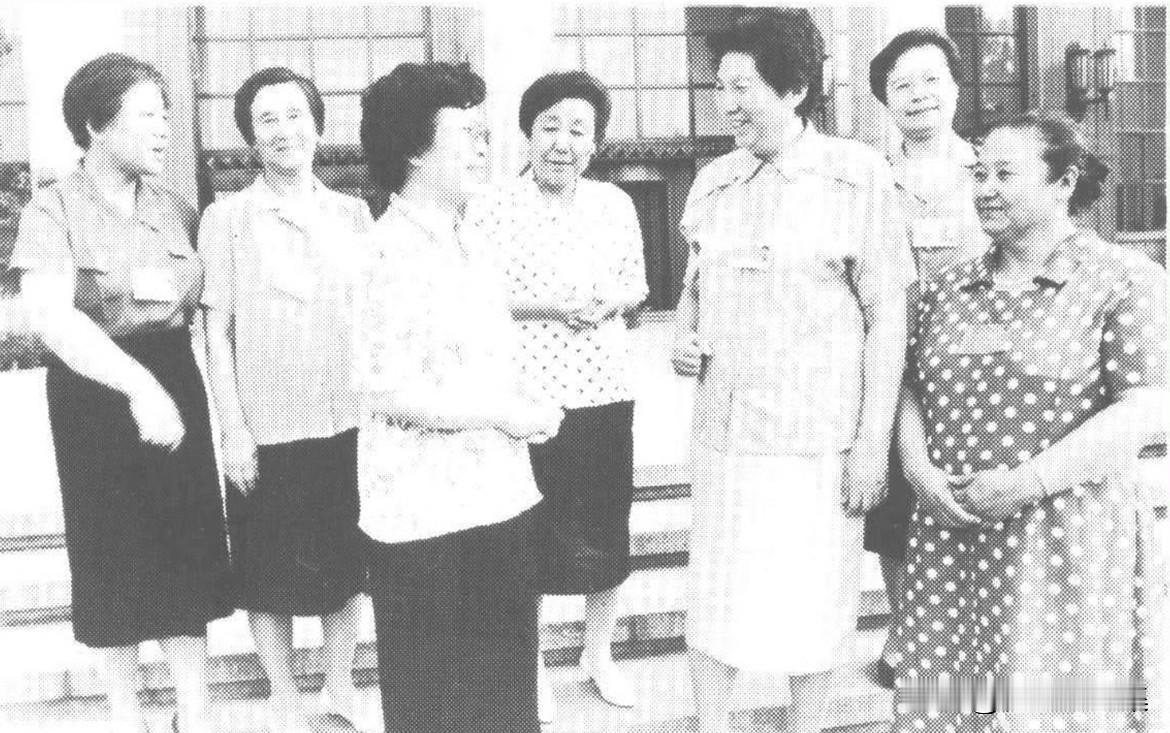 1993年9月,中国妇女第七次全国代表大会期间,全国妇联主席陈慕华与新当选的副主席们亲切交谈的历史瞬间。从左至右依次为:郝诒纯、韦钰、黄启璪、赵地、陈慕华、聂力、玛依努尔·哈斯木。这次大会在联合国第四次世界妇女大会即将于1995年在中国召开的背景下,大会首次提出到本世纪末我国妇女发展的10项战略目标,为推动中国妇女事业发展作出了重要贡献。