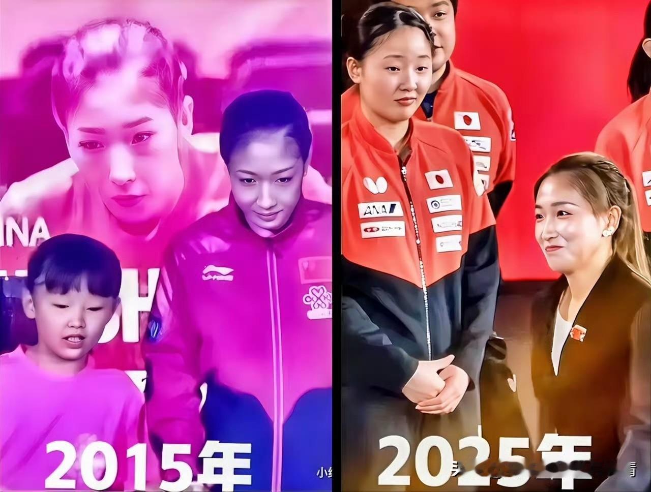 一组跨越十年的世界杯合影,道尽了乒乓球赛场的传承与变迁。 2015年仙台世界杯上,张本美和还是为赛事服务的小球童,彼时刘诗雯已是站在赛场的顶尖球员;2025年成都混团世界杯,她们的身份完成了奇妙对调——张本美和成长为参赛的实力球员,刘诗雯则以颁奖嘉宾的官员身份亮相。 十年光阴,小球童蜕变为赛场选手,昔日名将转型赛场幕后,这组照片也成为乒乓赛场薪火相传的生动见证。