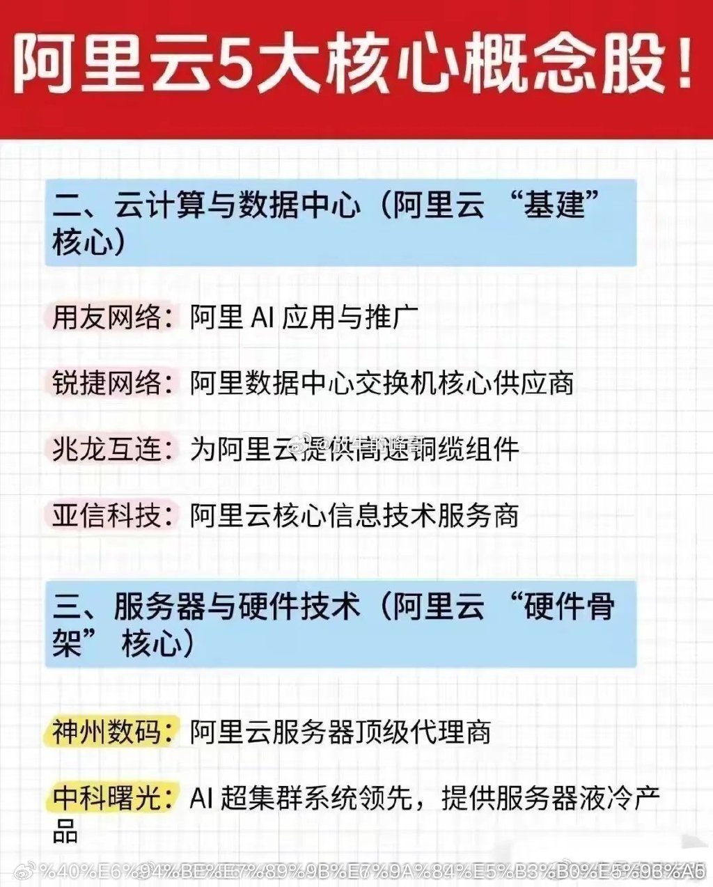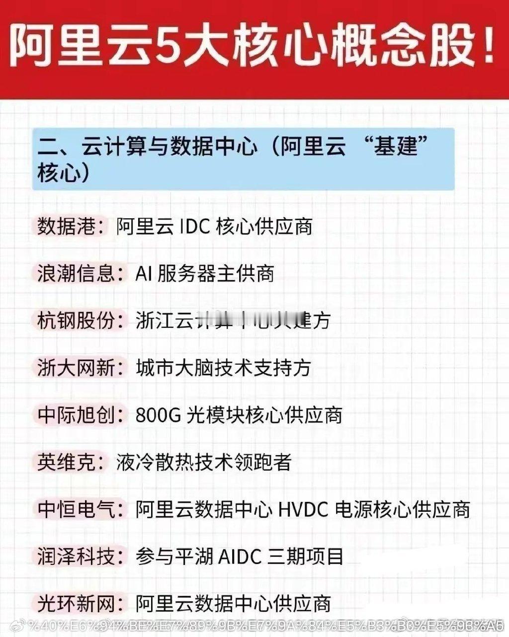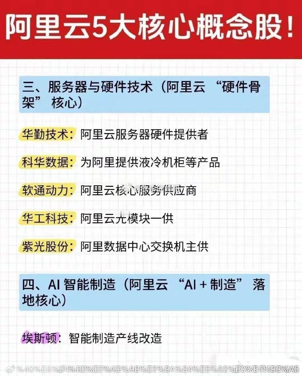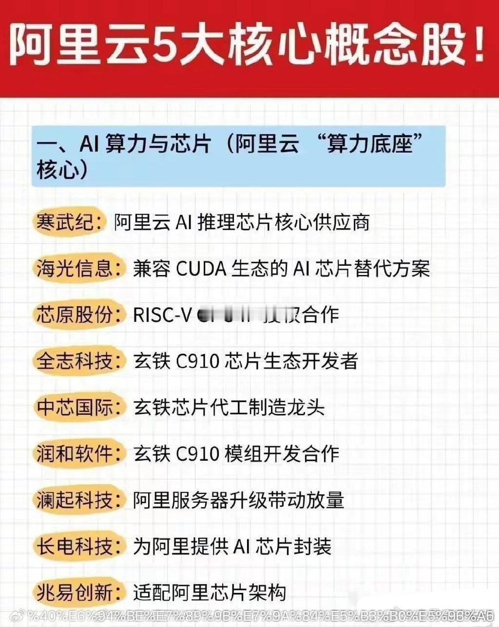 阿里云5大核心概念:第一,AI算力与芯片,(阿里云底座核心)第二,云计算与数据中心,(阿里云基建核心)第三,服务器与硬件技术,(阿里云硬件骨架核心)第四,AI智能制造,(阿里云ai加制造落地核心)第五,其他协同,(阿里云生态联动核心)