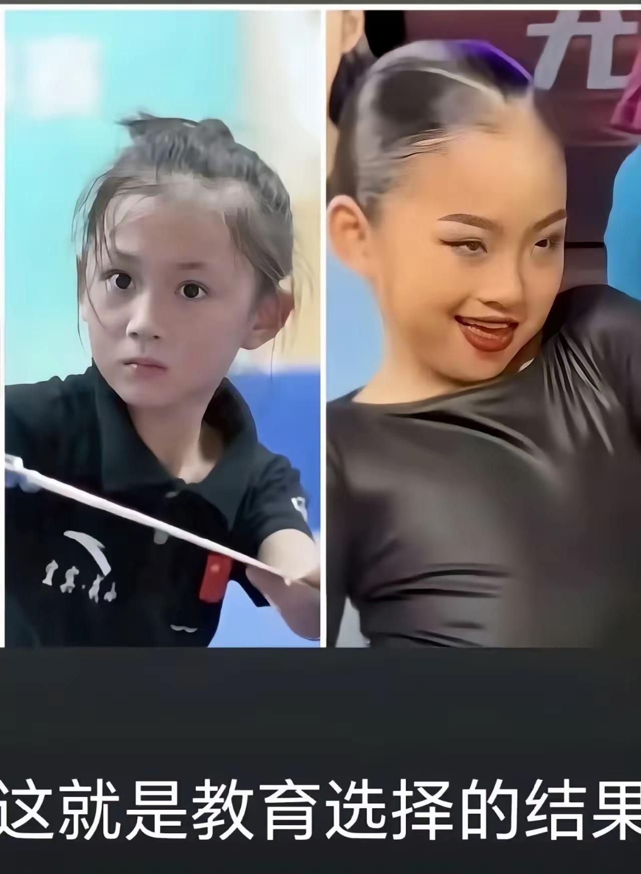 左边小女孩学中国武术,右边的小女孩学拉丁 画面一摆出来,不用多解释,很多人一眼就看明白了。不是谁高级谁低级的问题,而是那股子气质,真的不一样。练武术的小姑娘,站那儿就很稳,眼神干净,有劲儿,有点小小的倔强,也有分寸感。那是一种被长期规范、被要求“站好、站直、站稳”慢慢磨出来的状态。 再看另一边,学拉丁的小女孩,动作是花哨的,表情也多,可眼神明显有点飘。不是说孩子不好,而是给人的感觉更外放、更早熟,少了点定气。长期训练的方向不同,身体语言和精神状态自然会往不一样的地方走,这个骗不了人。 很多家长其实心里都有数。中国的传统教育,讲究的是先立人,再立事。练武术,第一课不是打人,是站桩、抱拳、守规矩。老师一句“停”,孩子就得收;一句“再来”,就得咬牙顶住。这种过程,看着苦,却是在给孩子打底子,把心性一点点压实。 反观一些西方教育,更强调表现、自我、释放。对一部分孩子来说也许合适,可对更多中国孩子,未必对路。太早把孩子往“表现型人格”里推,很容易外热内虚,看着活泼,内里却没根。时间一长,抗挫能力、专注力、边界感都会受影响。 五千年的文化不是摆设,它是无数代人试出来的结果。什么年纪该学什么,什么阶段该收还是该放,老祖宗早就给过答案。不是不让孩子接触外面的世界,而是根不能乱。根稳了,枝叶往哪儿长都不怕。 现在有些人一说传统,就觉得老套,一说西方,就自动贴上“先进”的标签。可真把孩子交出去一对比,差别就摆那儿了。文化不是口号,是落在孩子一举一动里的东西,是眼神里那点定力,是遇事不慌的底气。 中国孩子,骨子里就适合循序渐进、内外兼修的路子。先学做人,再学本事,这条线不能丢。别人的模式可以看看,但照单全收,真不一定是好事。