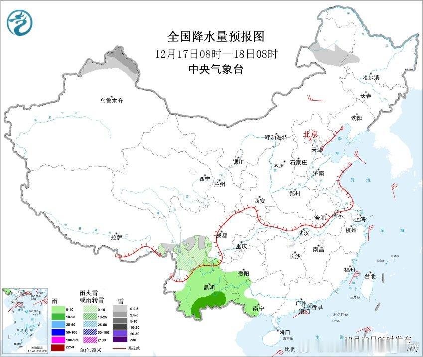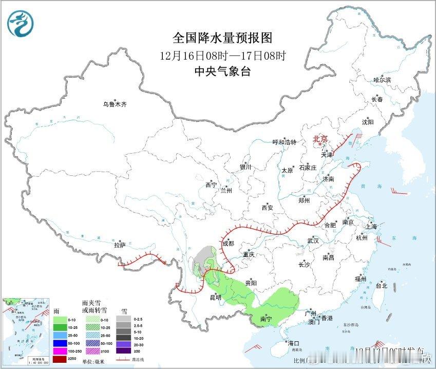 【雨雪】昨天到今晨,中东部地区出现立冬后最大规模降水。广西中北部、湖南南部、广东