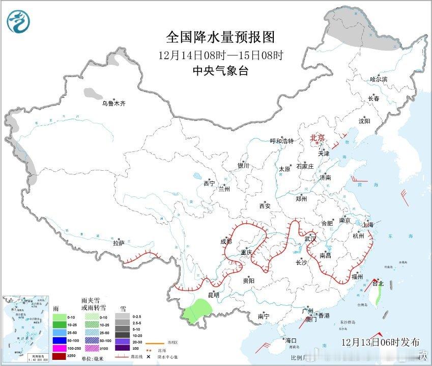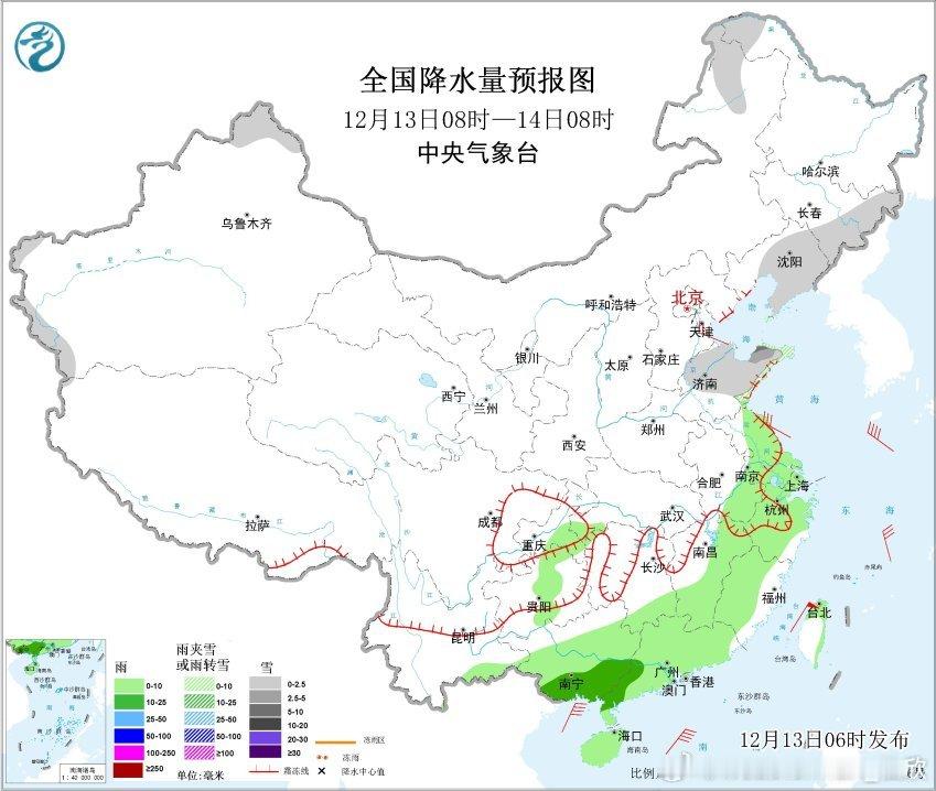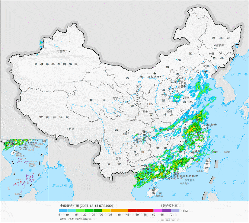【雨雪】昨天到今晨,中东部地区出现立冬后最大规模降水。广西中北部、湖南南部、广东北部等地出现中到大雨,广西站点包揽降水榜前十。北方出现大范围降雪,华北黄淮多地迎来今冬初雪,山西河南山东局地出现暴雪,包括济南,并且出现明显积雪。从今晨雷达动画看,降水随着冷空气推进,继续东移南下。降水总体缩减,但山东半岛还有明显冷流降雪。预计12月13日08时至14日08时,东北地区南部、山东中东部等地部分地区有小雪或雨夹雪,其中,山东半岛北部等地部分地区有中到大雪。江淮大部、江南中东部和南部、西南地区东部、华南大部等地部分地区有小雨,其中,广西南部、广东西南部等地部分地区有中雨。明天开始,我国大部地区又将开启晴朗干燥模式。
