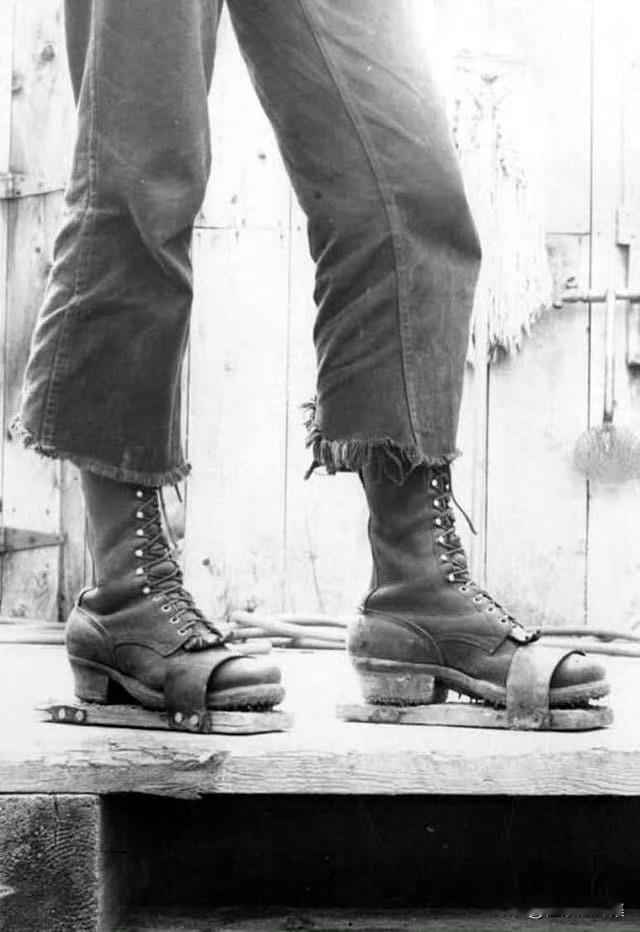 20世纪20年代,伐木工人在午休时穿的拖鞋,以保护食堂的地板 。伐木靴的设计核心是耐用和坚固,鞋底采用厚重的橡胶或皮革材质,带有深花纹路以增强抓地力。伐木工人之所以在进入食堂前换拖鞋,是因为伐木靴鞋底会粘附大量泥土、木屑和雪水,直接穿着进入室内会弄脏地板,影响食堂卫生环境。