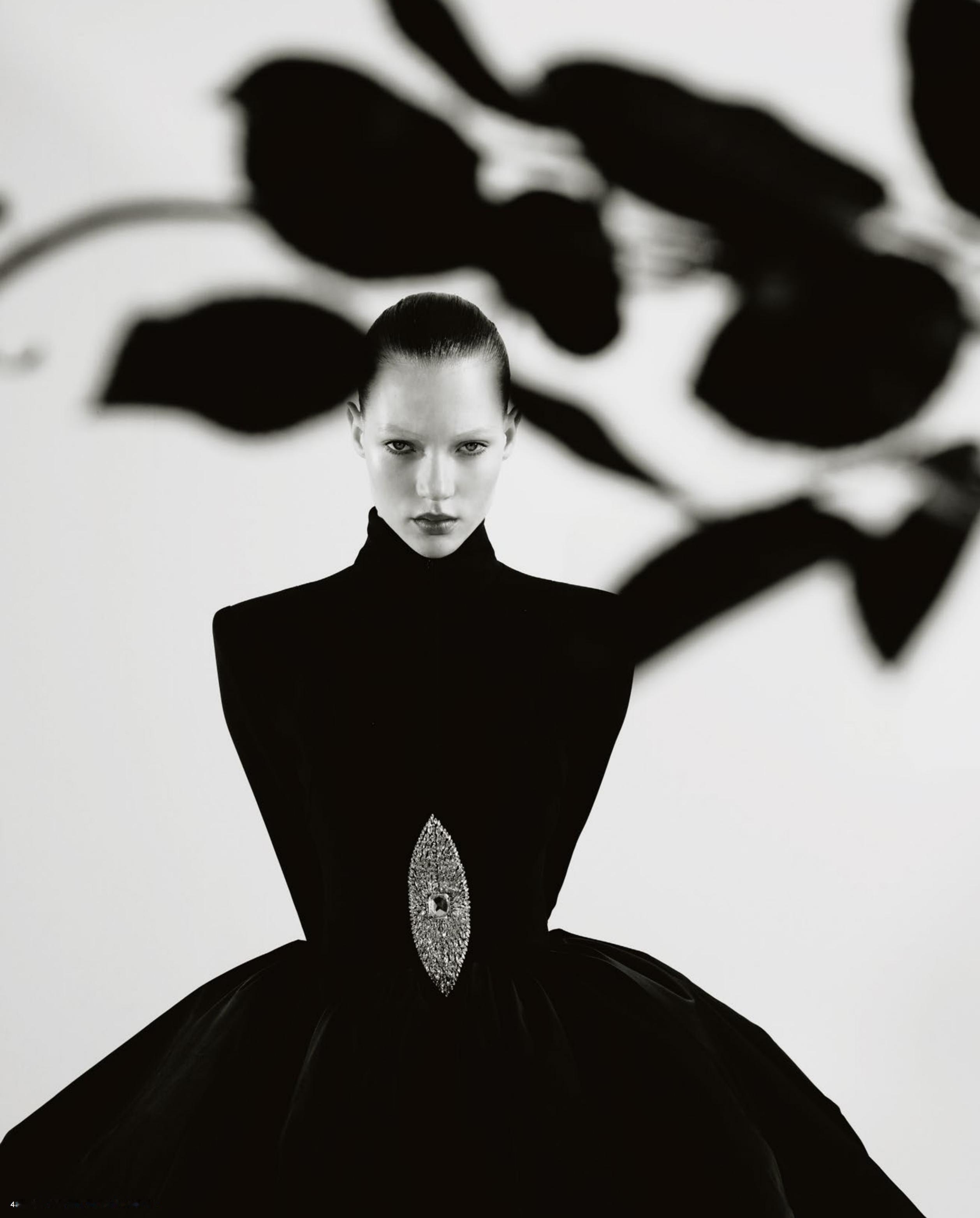 VOGUE Poland December 2025 波兰版 VOGUE 十二月刊的一组黑白视觉高定专题大片 ,演绎了各品牌最新一季高级定制系列作品 . 🖤摄影 :Fanny Latour-Lambert 造型 :Kasia Mioduska 模特 :Olga Lane