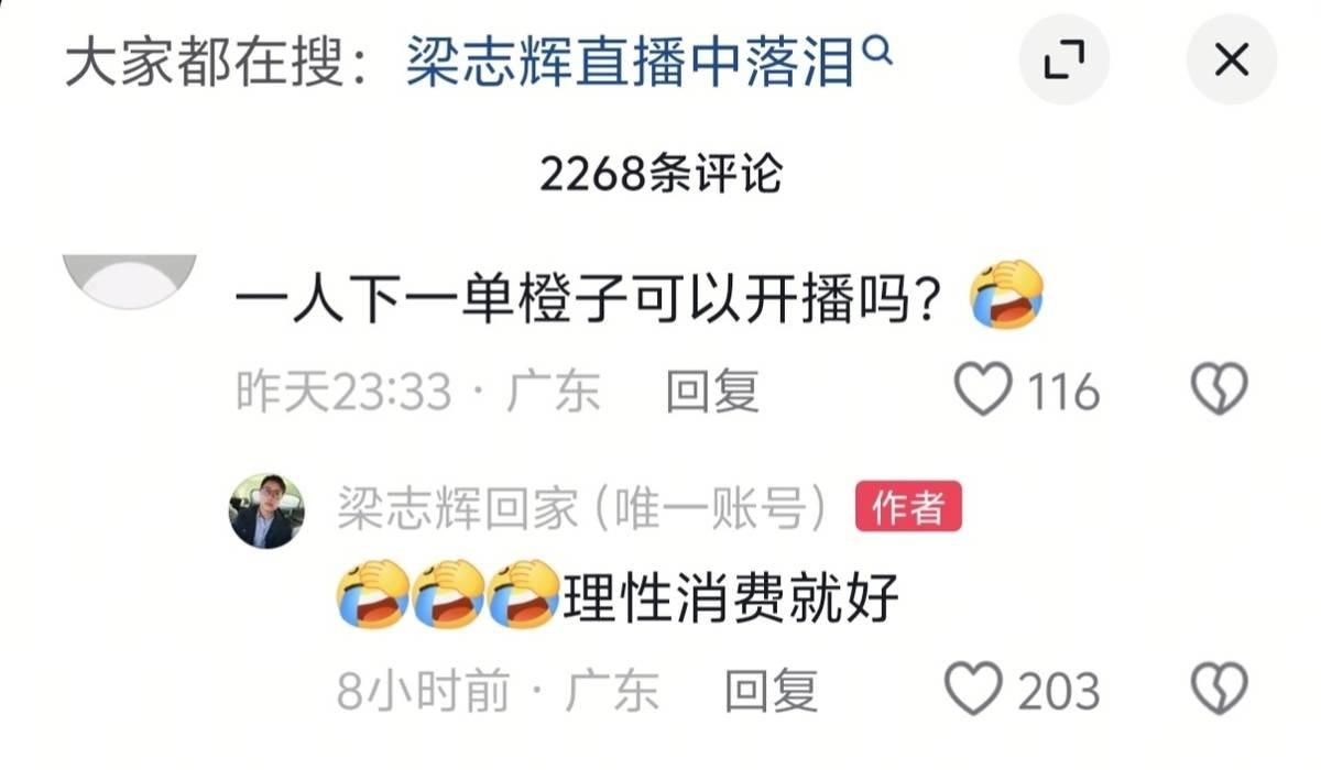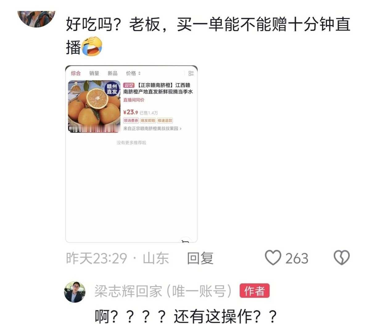 不到一天卖了1万五千单橙子,就为让他开个直播。 网友疯了似的,买橙子求他开播,激将法威胁法都用上了。梁志辉以前是跪在街边啃馒头的苦孩子,现在成了全网催更的顶流。有人开播被骂死,他不开播被求死,同样都是回家的孩子,这待遇差距也太魔幻了。 网上都在说这是苦尽甘来,是善良得到了回报。大家看着他笑,心里舒坦。 这哪是什么回报,这是赎罪。 当年他爸爸跪在街头,那个米饭罐子,那些眼泪,是全网观众心里一块没还完的债。现在大家疯狂下单,花式催更,像不像一群拼命想逗笑债主的欠债人?我们买的不是橙子,是心里那份过意不去;催的不是直播,是等他亲手把那份沉重给揭过去。我们不是在捧他,是在救赎当年那个隔着屏幕无能为力、只剩心疼的自己。 当年我们流的泪有多苦,现在就想让他还的笑有多甜。 这根本不是追捧,这是一场集体心理治疗。