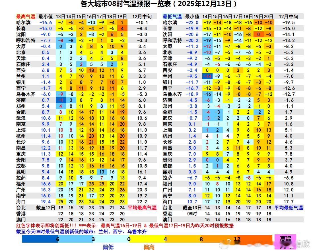 【降温】今晨在寒潮影响下,西北到华中多地出现6-14℃降温,青海南部降幅有10-18℃。截至8时最低气温,乌鲁木齐老国家站零下18.9℃、西宁零下16.7℃、兰州零下9.5℃,创立冬后新低。今天寒潮继续东移南下,江南华南还有明显降温。明晨最低气温0℃线南压至浙江南部、江西北部、湖北南部一带。华北到江南多地气温将创出立冬后新低。预计明晨最低:兰州零下14℃、太原零下12℃、北京零下10℃、济南零下6℃、合肥零下4℃、武汉零下3℃、南京零下1℃、贵阳0℃、上海1℃、长沙2℃、南昌3℃。