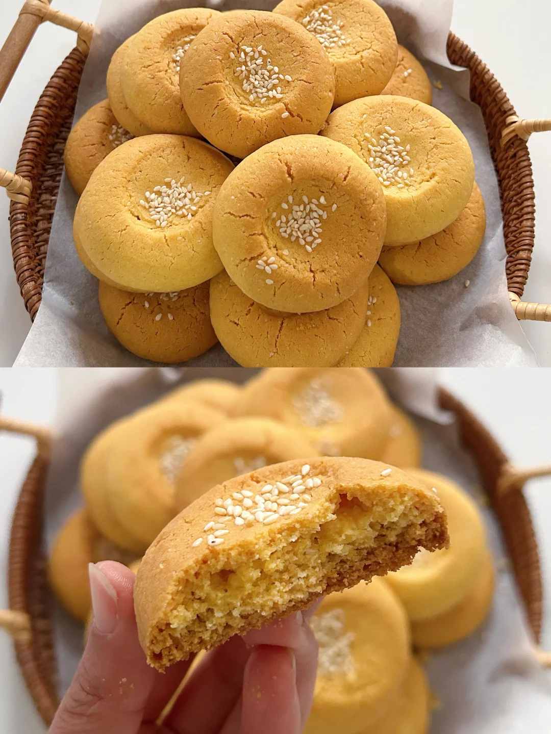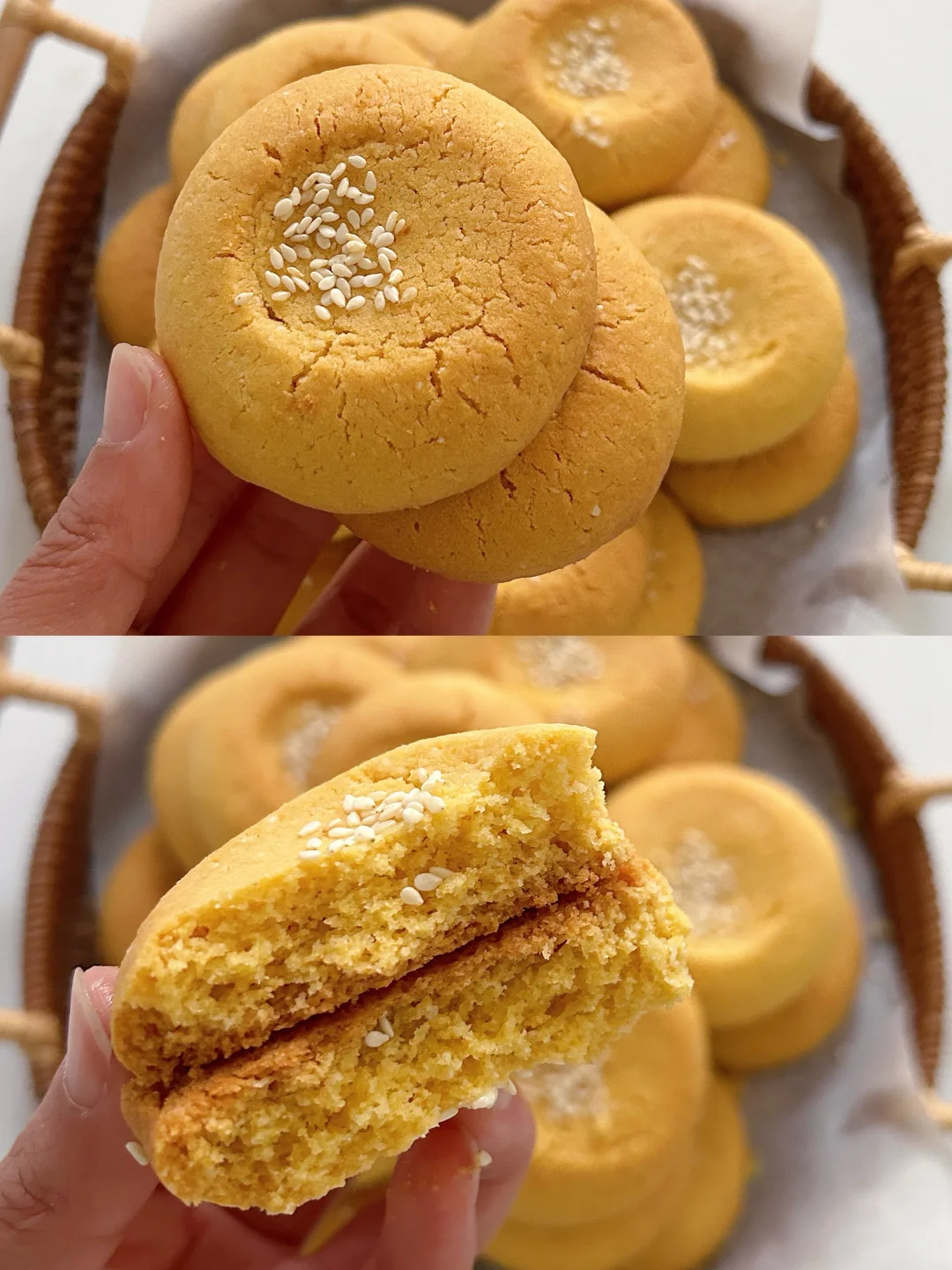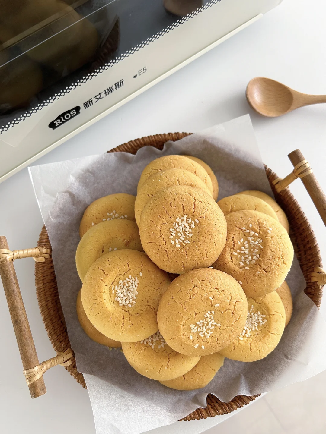 烤好的桃酥,有着玉米味的清香,咬一口酥到掉渣,好吃不腻,喜欢的话,快安排一起来吧