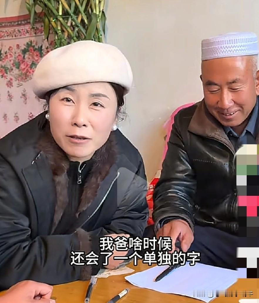 对穆萨爸妈来说,学写名字这项作业比干活还难[捂脸]感觉穆萨妈妈学会写字的动力就是“穆萨娶媳妇”[捂脸] 不过这对父母不识字却培养了三个优秀的孩子,带着去了那么多地方也是幸福的很[赞][赞][赞] 车车姐就直接说,不会写名字银行钱取不出来,以后都充公里,归国家了就[看]看他们学不学? 其实原来没上过学的人真是可怜!咱们学写字的时候是从笔画开始一点点学的,他们没学过笔画,要让他们直接写整个字就是为难的很!这就像小孩学走路,还不会挪步你就想让他跑根本就不可能的!因为我堂姐就没上过学,也不会写自己的名字,以前教她写名字我深有体会啊!!!
