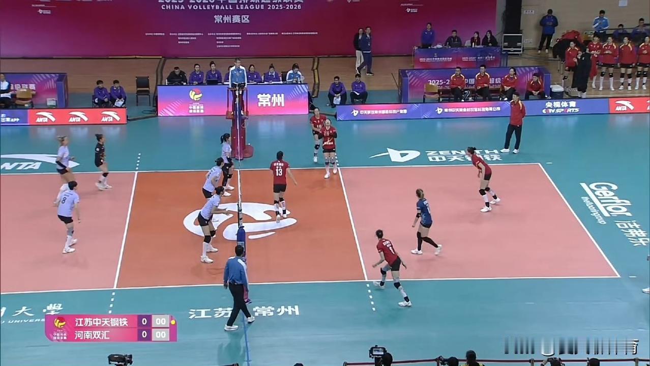 正在直播江苏女排VS河南女排!二传手张籽萱成年队女排联赛首秀,吴梦洁的对角主攻手是范泊宁,接应上的是唐欣,副攻线万梓玥和杨佳,自由人倪非凡,江苏女排全新的一套首发阵容,这套阵容基本上都是去年进过国家队的,张籽萱跟这些攻手都配合过,就是江苏女排这套球衣真的很丑!吴梦洁和范泊宁组成的主攻线,强攻能力还是比较突出的,目前第一局江苏13-10领先,河南叫暂停!