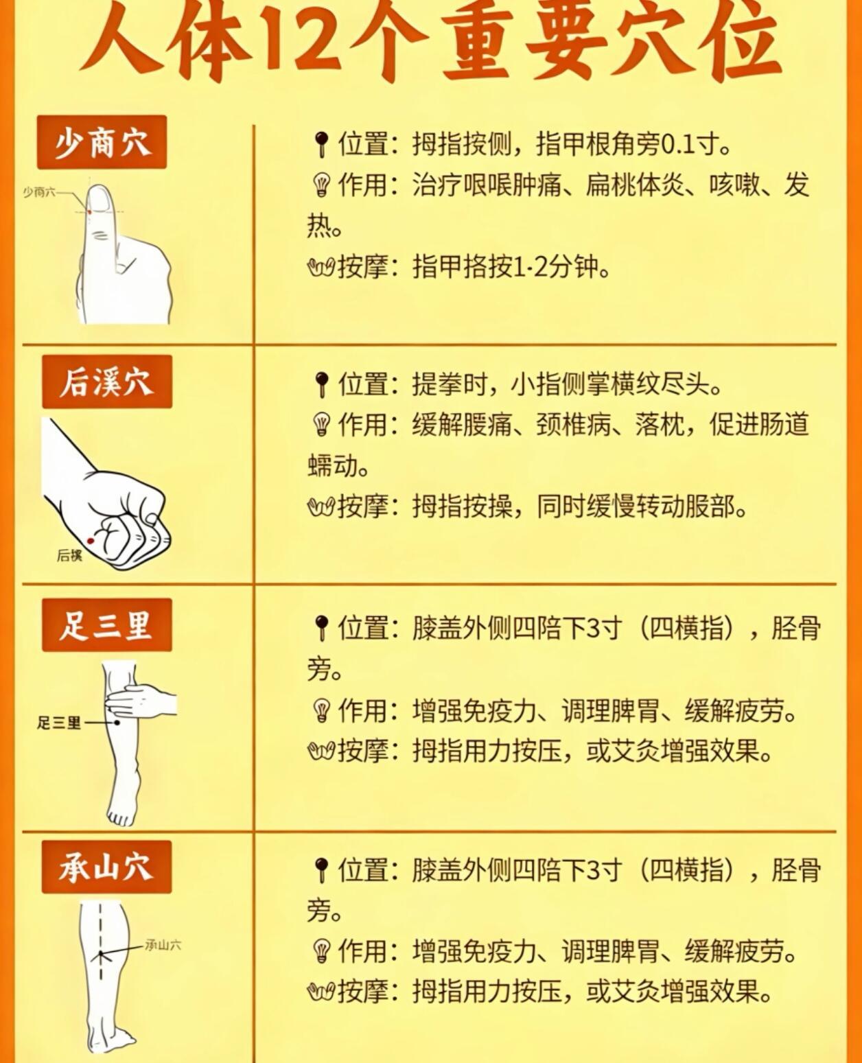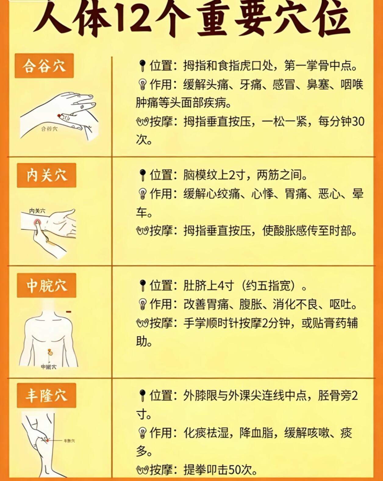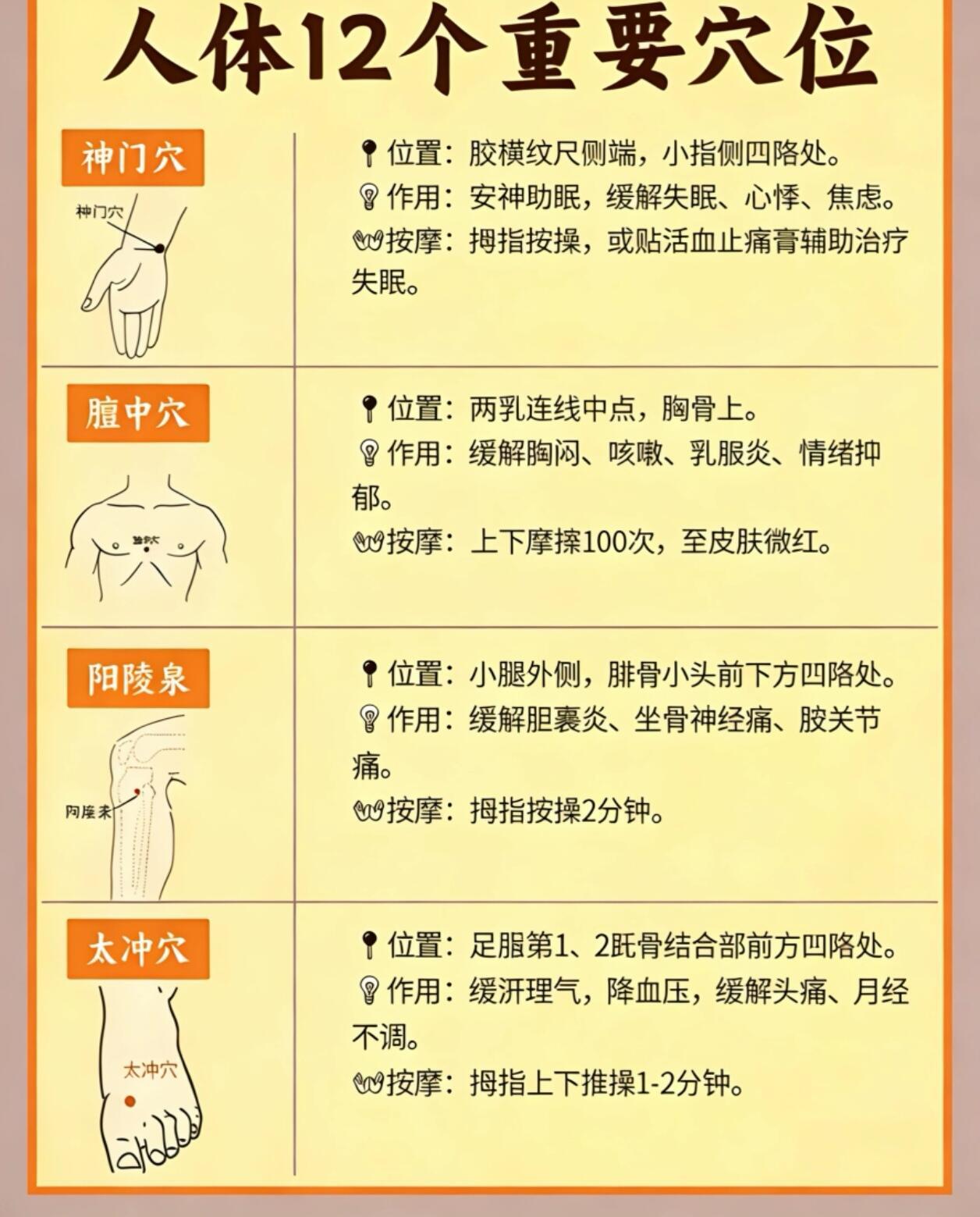 🌿一张图存好!这12个穴位就是缓解你的“随身急熬夜头痛?胃胀难受?焦虑失眠?健康养生穴位养生