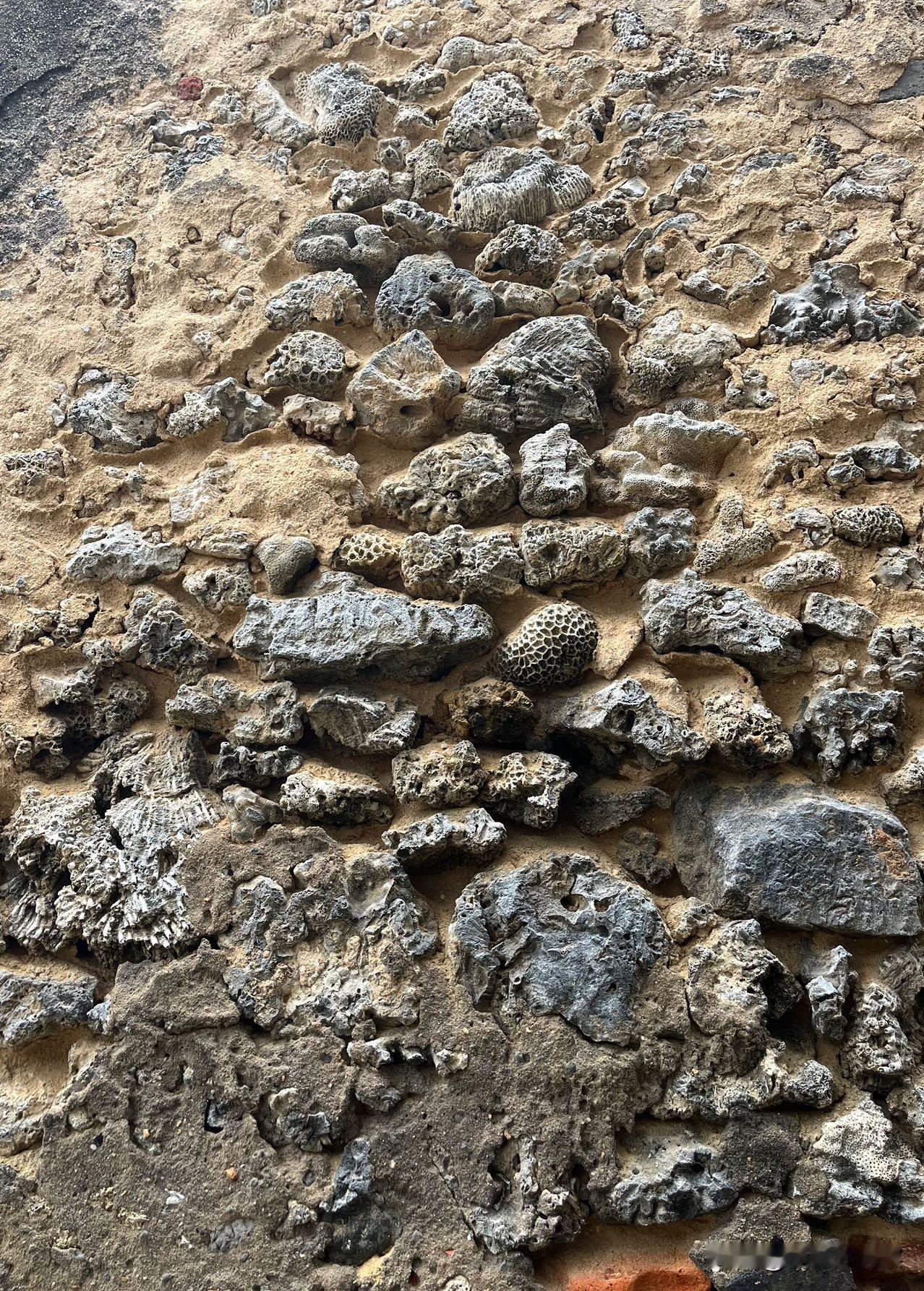 在海南幸遇珊瑚墙,那是大海送上的惊喜。 海南的美景太多了,真是美不胜收,处处皆可入画,手机库存装不下。而最让人料想不到,眼界大开,乐于回味、陷于沉思的,是废墟中的一面面含有珊瑚砌的墙。 这种墙已经很旧了,可遇不可求,藏于古老的村落,散存在过去的沧桑里。遇到了,那是一份幸运,那是大海把她的美和人的智慧一并送到你的眼前。 海边人可能司空见惯,那就是物尽其用。无论珊瑚还是宝石,找不到欣赏的人,它们都是石头。一堆一堆的石头,能够用来砌墙,身价也倍增。 可叹,在那信息传播、运输条件落后的年代,有多少美丽像珊瑚一样混同砖头瓦块,埋在泥土之中。古代,又有多少人像珊瑚一样呢?