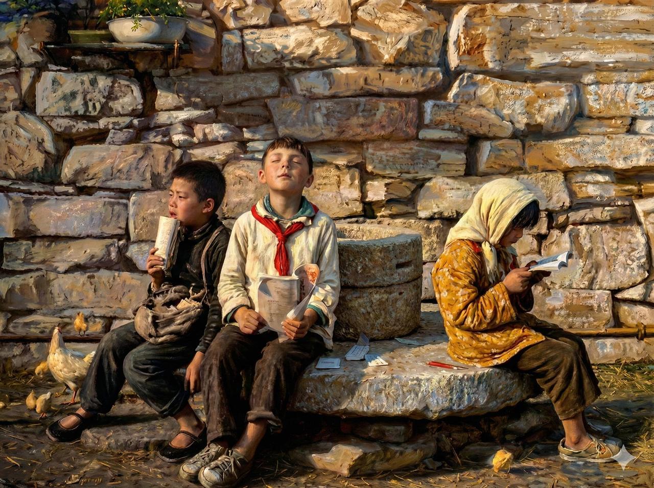用AI还原80.90后语文课本插图(二) 这一组的还原程度更高一点 有很多大家都熟悉的插图 第一组的月亮真的是传承了AI月亮大法[捂脸] 跟手机拍的AI月亮一模一样 还有第7组,人物动作骆驼的表情简直神了。