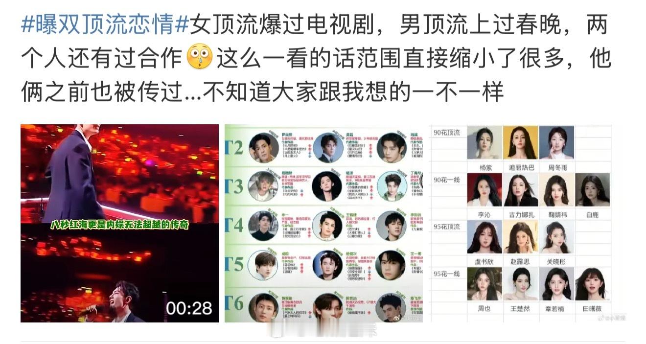 曝双顶流一演员一歌手 曝双顶流恋情,一演员一歌手,女顶流爆过电视剧男顶流上过春晚,和张小寒说的是同一对吗