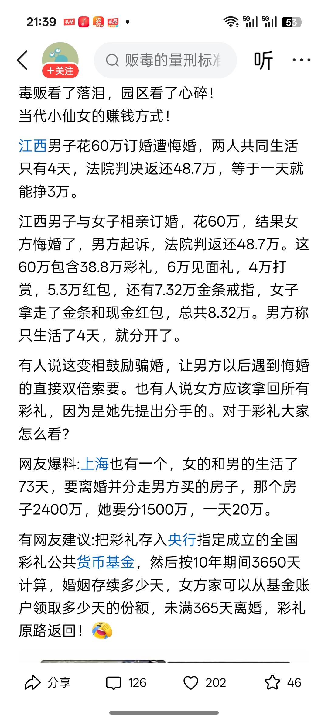 还有专门靠结婚赚钱的,彩礼几十万,结婚红包,黄金首饰等,结婚后哄着男方上交工资卡加上男方父母给生活费,结婚几个月就开始找事情挑刺离婚,差不多半年夫家一家人被折磨快疯了同意离婚了,立马无缝衔接下一个,几个月的时间尽赚几十万到百万,从22岁开始,到32岁,可以结婚10几次,轻松攒下接近上千万。0成本创业,一本万利,现在越来越多的人这么玩了,手段厉害点的可以把男方的房子分走一半。结婚几次就可以拿到千万。