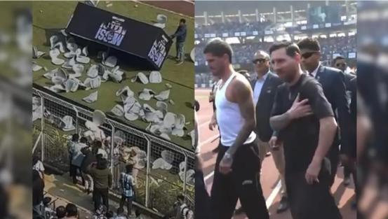 梅西印度行10分钟闪人!球迷砸场怒讨说法,1千块门票只看个挥手? 12月13日,印度加尔各答盐湖体育场彻底炸了锅!8.5万人挤爆球场追梅西,结果球王露面不到10分钟就溜了,愤怒的球迷直接掀翻座椅、扔水瓶砸场,现场一片狼藉。 这场闹剧早有伏笔。球迷们花390到1947元人民币买门票,有的从大吉岭千里迢迢赶来,满心期待看梅西秀脚法、说句话。可梅西一出场,就被政客、官员们团团围住,形成密不透风的“合影人墙”,普通观众别说近距离接触,连脸都看不清。 “花1.2万卢比(约935元)就看个挥手?”一位球迷气得发抖,“官员们免费占C位,我们买票当背景板?”更糟的是,主办方承诺的射门表演、宝莱坞巨星助阵全没兑现,梅西原定的绕场一周也泡汤,全程没说一句话就匆匆离场。 失望瞬间变怒火,球迷们冲进球场破坏临时设施,震耳欲聋的嘘声响彻全场。西孟加拉邦首席部长赶紧道歉,说要成立调查组追责,可球迷只想要退款和说法。目前组织方没回应,梅西方面也没表态,只有警方到场维持秩序。 其实球迷怒的不是梅西,是被特权阶层和草台班子联手“收割”。花大价钱追偶像,换来的却是敷衍和欺骗,换谁都得炸。这场10分钟的闹剧,到底是组织方失职,还是特权文化作祟?梅西会不会回应争议?退款能否落实?后续进展我们持续关注。