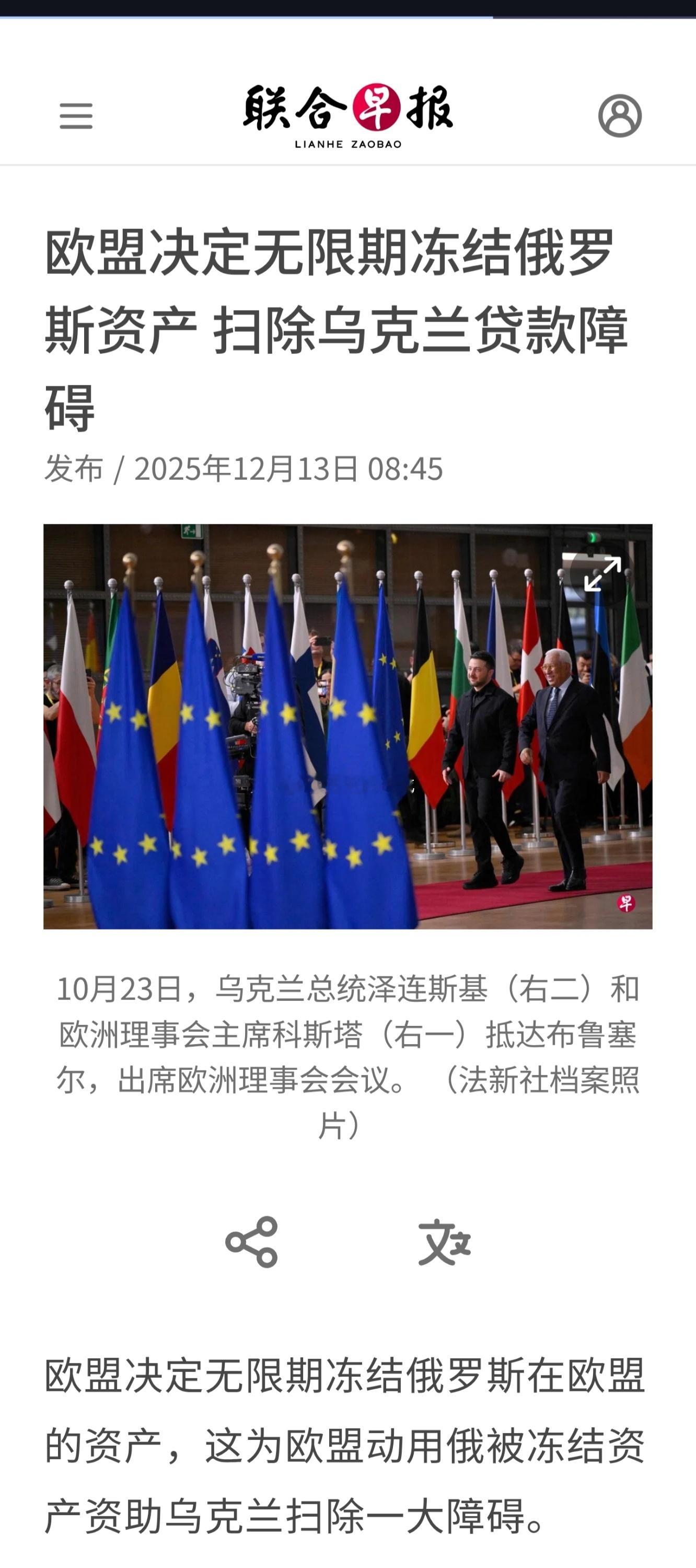 欧盟决定无限期冻结俄罗斯在欧盟的资产,这为欧盟动用俄被冻结资产资助乌克兰扫除一大障碍。欧盟理事会星期五(12月12日)发表一份声明说,欧盟理事会当天紧急决定,暂时禁止将冻结在欧盟境内的俄罗斯中央银行资产转移回俄罗斯,且没有说明期限。在这个决定出台前,欧盟冻结俄资产的制裁措施须每六个月经27个成员国一致同意才能得以续期。欧洲理事会主席科斯塔在社交媒体上说,欧盟领导人承诺维持俄罗斯资产的冻结状态,直到俄罗斯结束与乌克兰的冲突并赔偿所造成的损失。