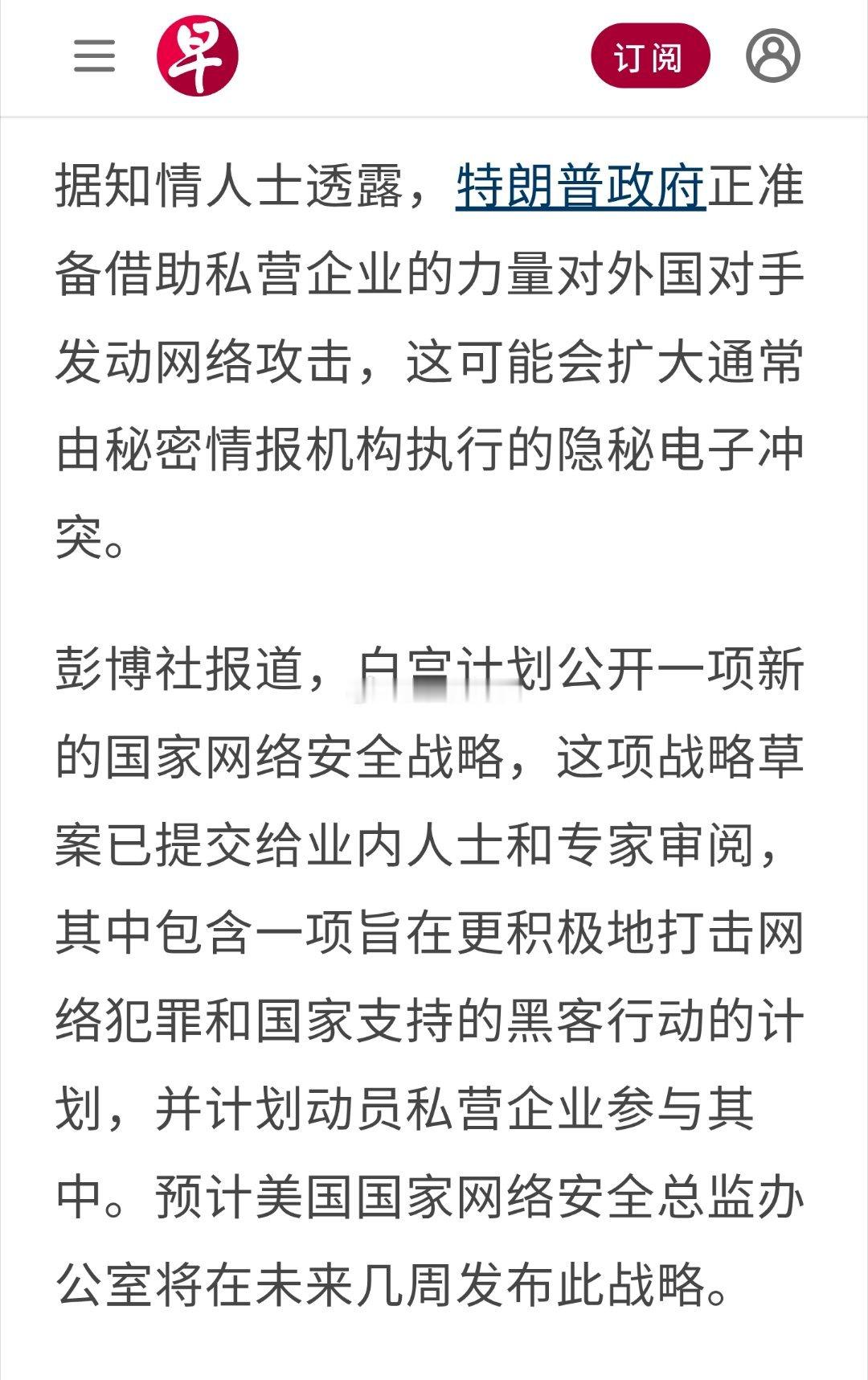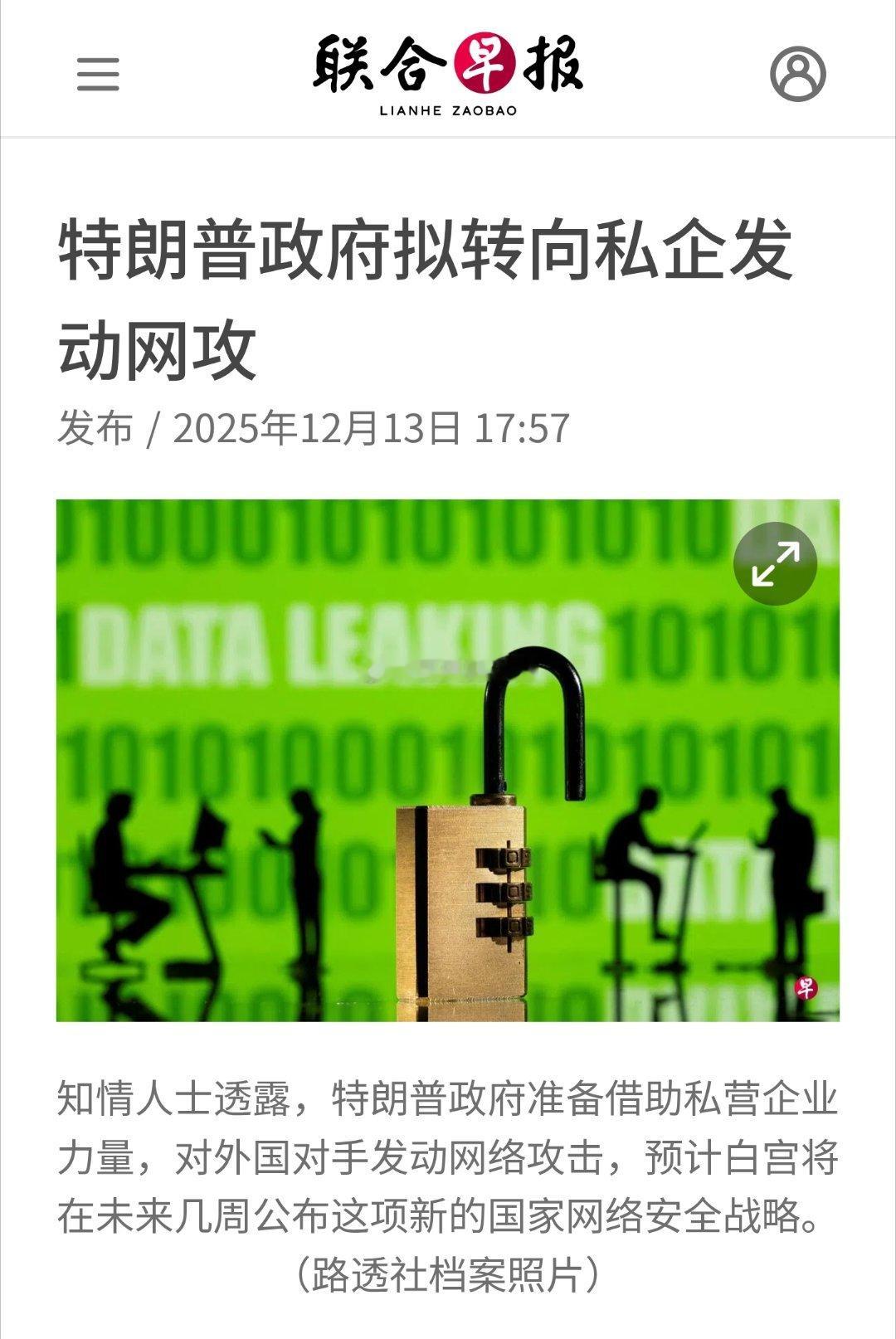 彭博社援引知情人士透露,特朗普政府正准备借助私营企业的力量对外国对手发动网络攻击,这可能会扩大通常由秘密情报机构执行的隐秘电子冲突。白宫计划公开一项新的国家网络安全战略,这项战略草案已提交给业内人士和专家审阅,其中包含一项旨在更积极地打击网络犯罪和国家支持的黑客行动的计划,并计划动员私营企业参与其中。预计美国国家网络安全总监办公室将在未来几周发布此战略。
