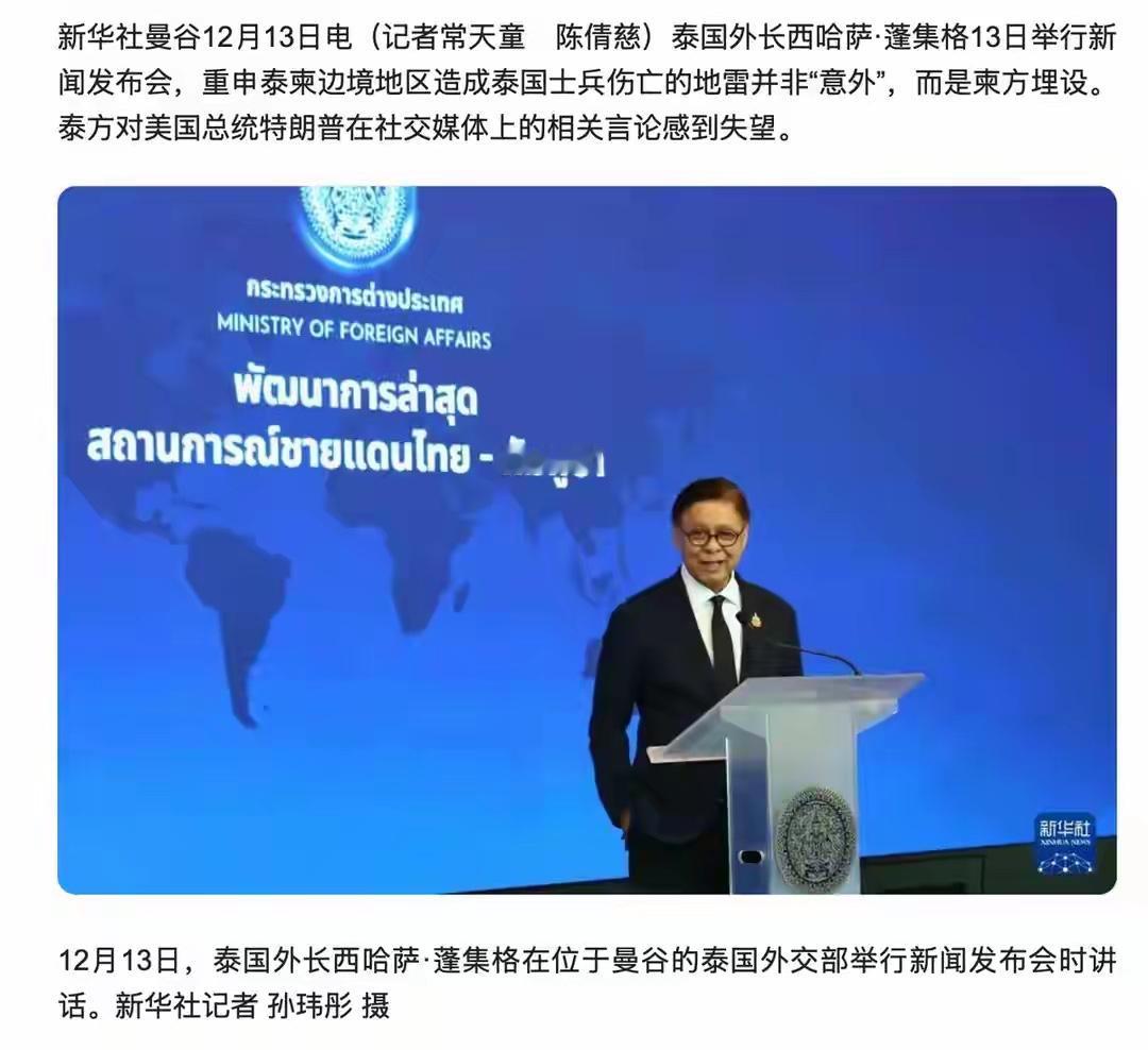泰国外长硬刚,特朗普碰了一鼻子灰 据新华社报道,泰国外长蓬集格在新闻发布会上表示,此前特朗普声称对多名泰国士兵造成伤亡的炸弹事件是一起“意外”,泰方对此“深感失望”,严重伤害了泰国人民的感情。 此前,特朗普在社交媒体上吹嘘到,在一通电话斡旋下,泰柬双方已经停火。可接着泰方予以否认,并用F-16投掷7枚炸弹,摧毁柬埔寨境内桥梁与酒店,以实际行动否认了美方说法。 在东盟峰会期间,特朗普撇开中国,单方面促成泰柬停火,以为这样把自己推向诺贝尔和平奖。可他高看了自己,小瞧了东盟的复杂性,这次下不了台阶了!