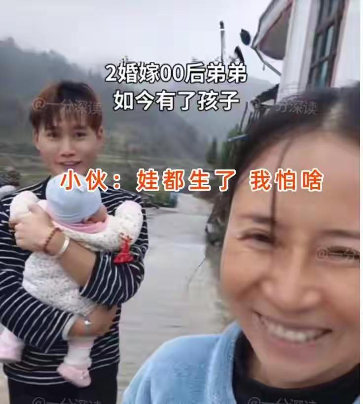 22岁小伙网恋一月闪婚,34岁二婚妻子显老引质疑,他一句“有娃不怕”霸气回应! 在当下农村,“娶妻难”已然成为普遍难题,不少年轻人为了成家,只得放宽择偶标准。近日,贵州一位22岁农村小伙的婚姻,引发了全网热议。他与大自己12岁的离异大姐网恋仅1个月便闪婚,妻子被指“又丑又老”,但小伙坦然回应“有娃不怕”,女方更是自信晒恩爱,强势怼翻质疑者。 农村小伙娶妻难,网恋邂逅“贴心大姐” 小伙是00后,生于贵州农村,家庭条件普通,没车没房,自己只是临时工,每月工资仅1000元左右。在农村,这样的条件想娶到媳妇,简直是“天方夜谭”。看着同龄人陆续成家,小伙心急如焚,便试着在网上寻找缘分。 没想到,他真遇到了心意相通之人。他在网上结识了一位34岁的姐姐,对方离异且大他12岁,可两人聊得十分投缘。小伙觉得大姐说话做事贴心,相处起来十分舒服;经历过情感创伤的大姐,也被小伙的真诚和活力吸引,两人迅速陷入热恋。 这段网恋仅持续1个月,两人便奔现,见面后直接确定终身,火速领证结婚。更令人意外的是,这场婚礼没让小伙花多少钱,反而是女方拿出2万元操办。原来,女方有自己的小生意,经济独立能负担日常开销,名下还有一套房子,条件比小伙优越得多。 颜值年龄差距引热议,夫妻坦然回应质疑 婚后,女方很快怀孕并顺利产子,如今孩子已四个月大。可两人抱孩子出门时,总会引来异样目光,甚至有人误把他们当成“母子”。从网友曝光的视频看,女方满脸沧桑,皱纹明显,法令纹深,眼皮松弛,与年轻帅气、还有青春痘的小伙站在一起,颜值和年龄差距格外明显。 此事在网上传开后,不少网友质疑:“小伙图啥?女方又老又丑,年龄大这么多”“1个月闪婚太草率,是不是看中女方房子和钱”。面对质疑,小伙坦然直言:“反正有孩子了,我怕什么!” 女方态度更强硬自信,她不仅天天在网上晒恩爱,还回怼质疑者:“34岁离异又怎样?我照样拿下00后小鲜肉!说我丑的人,你们能做到吗?”婚后她自信满满,丝毫不把外界闲言碎语放在心上。 婚姻冷暖自知,合适胜过“标配” 在当下婚恋市场,年龄、颜值、家境常被视为“硬指标”,但这场闪婚打破了这些固有观念。对小伙来说,出身农村、经济拮据的他,在传统择偶市场难觅合适伴侣,而女方经济独立、温柔体贴,满足了他对“家”的需求;对女方而言,离异后遇到真心待自己的人,即便对方年轻、经济一般,也愿相守。 其实,婚姻的本质并非“门当户对”,而是彼此契合。有人质疑他们“各取所需”,但不可否认,他们组建家庭、有了孩子,日子虽不富裕,却衣食无忧。那些看似不匹配的外在条件,在相互包容和真心面前,或许没那么重要。 你如何看待这场“姐弟恋闪婚”?是真爱使然,还是现实所迫?欢迎在评论区留言。