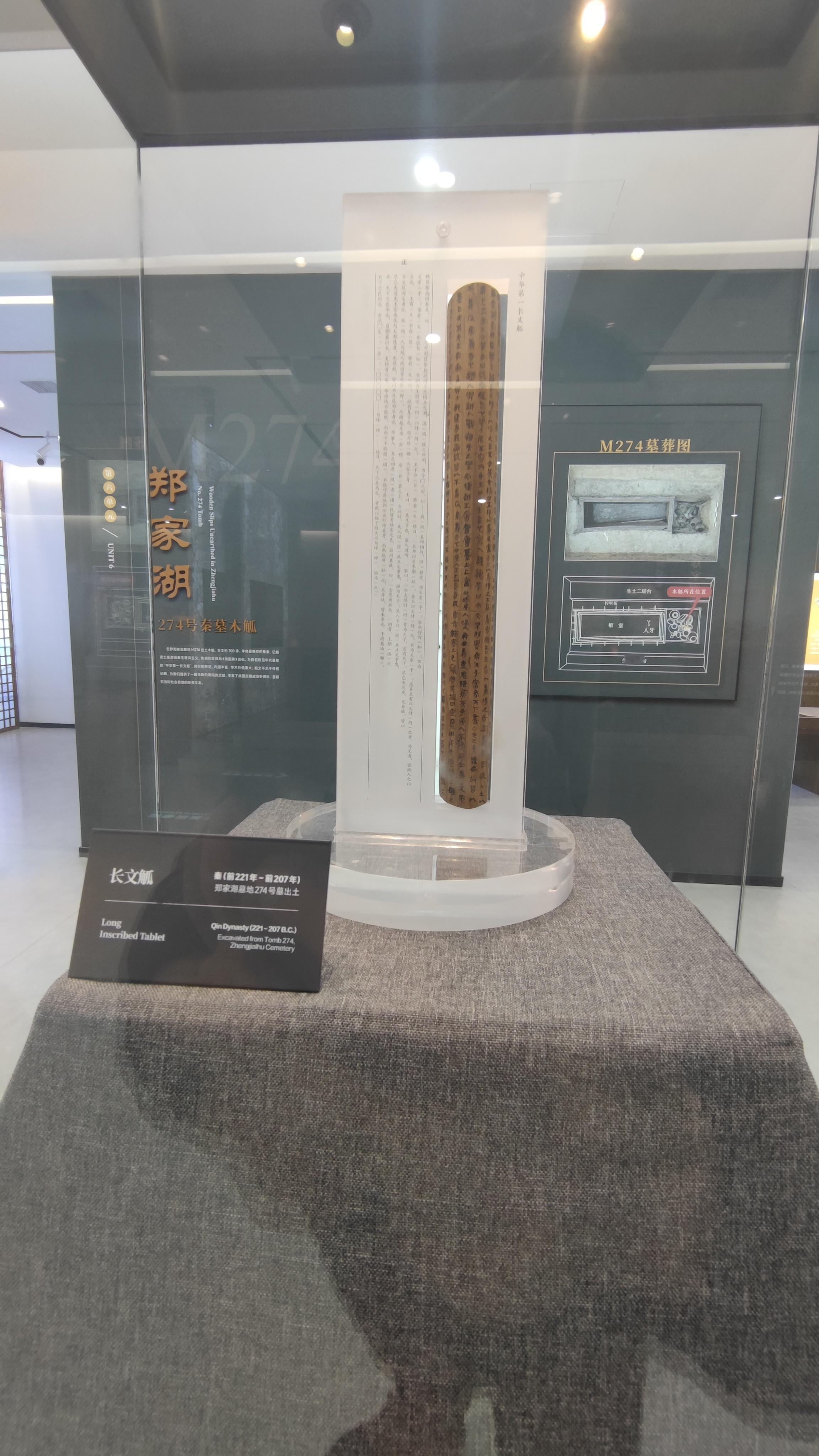 以前只记得云梦县的睡虎地秦简,喜的墓葬出土的法律条文和衷墓葬出土的他两个弟弟在战场上写给他的两封信。没想到云梦县发现的秦墓还挺多的。郑家湖秦墓2020年发掘,2021年被评为全国考古十大新发现之一。郑家湖秦墓出土的文物里面有一个长觚,长34里面,写了将近700个字。这件觚被称为中华第一长文木觚。推荐云梦县博物馆,县城能有这么大个博物馆应该是比较少见的。