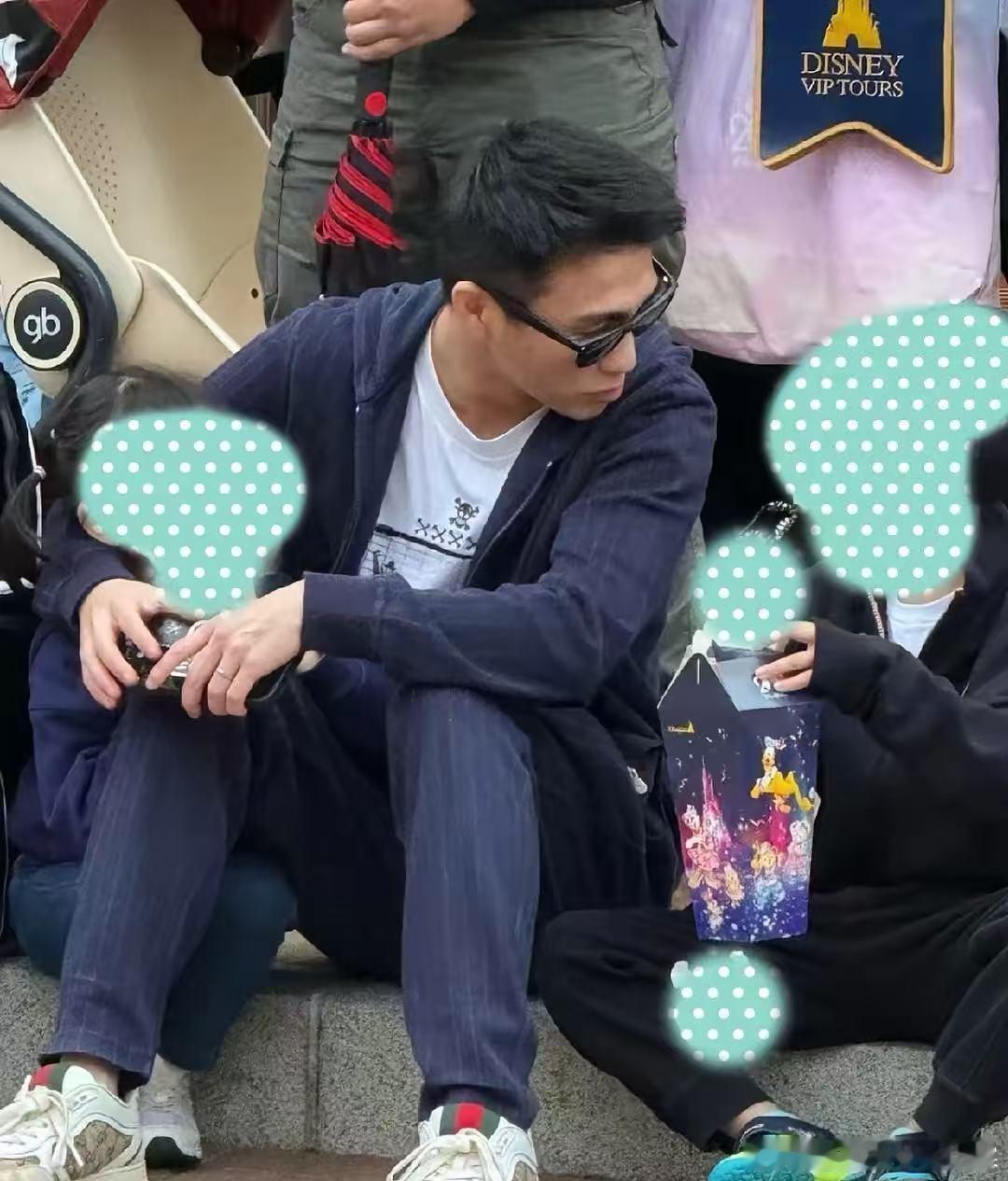 何猷君带儿女游玩香港迪士尼 香港迪士尼偶遇何猷君,父子三人坐在地上好接地气香港迪士尼偶遇何猷君