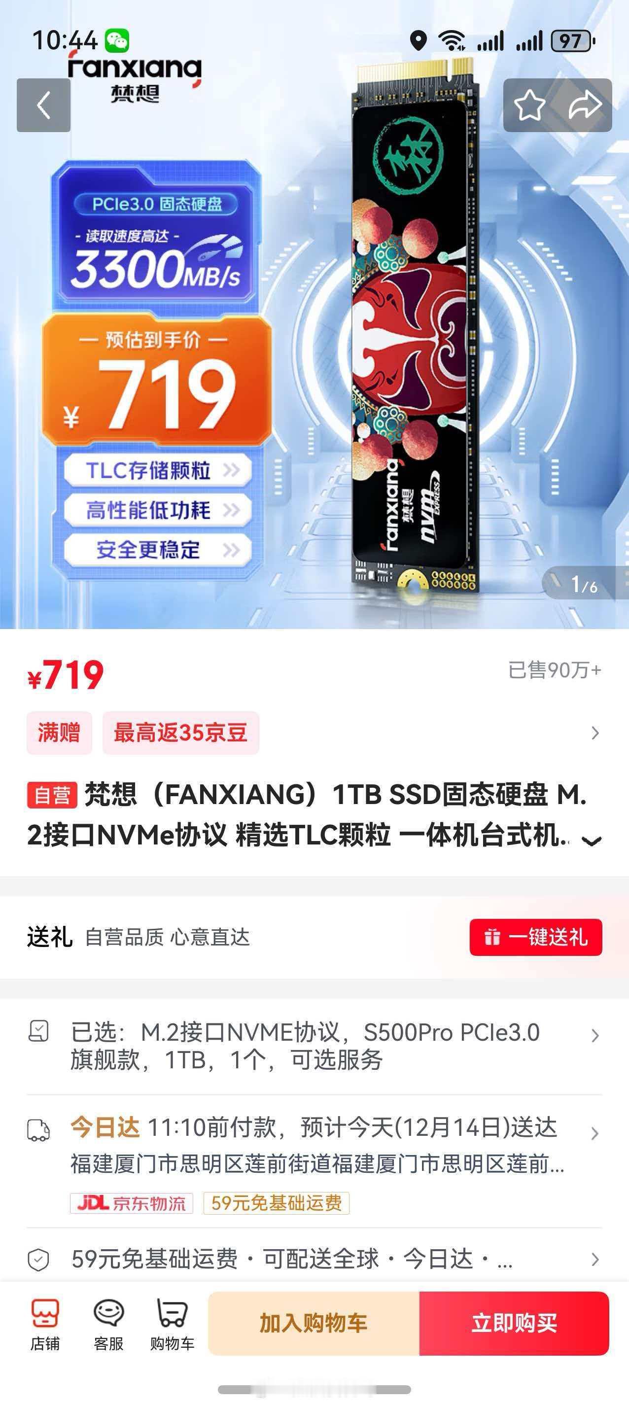 什么情况?我23年买的固态硬盘1T的270多元,怎么我刚刚看同链接,竟然涨了快3倍?有朋友知道是什么情况吗硬盘固态硬盘梵想固态硬盘科技