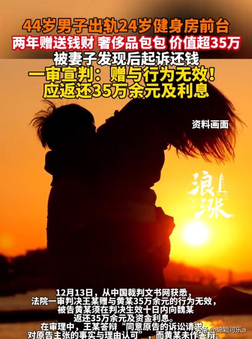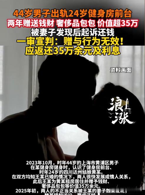 上海 44 岁已婚男砸 40 万养健身房前台!妻子起诉,法院判返还 35 万 + 利息,租房钱不支持 事情是这样的,上海黄浦区有个健身房,前台女孩,黄某,漂亮,四川来的,王某,有老婆,有钱,两个人,搞到一起了,婚外情,大家都在传,真的假的。 王某,为了黄某,花了好多钱,四十几万呢,租房子,买东西,魏某,王某老婆,知道了,气死了,告黄某,要钱,这下,事情大了。 黄某,达州来的,一个人在上海,不容易,健身房上班,肯定有人追,王某,四十多了,有家有室,图什么呢,魏某,更惨了,老公出轨,钱也没了,谁能受得了。 王某,后来又帮着老婆,一起告黄某,有点意思,开房记录,录音,都拿出来了,黄某,肯定知道王某结婚了,法院怎么判呢。 《民法典》说了,夫妻共同财产,得平等,婚外情,不行,法院判了,黄某要还钱,三十多万,还有利息,租房子的钱,法院没支持,也对。 这件事,好多人都在讨论,婚姻,家庭,道德,法律,乱七八糟的,这样的事,太多了,大家都说,这到底是怎么一回事,很多人看完这个故事,都会去想,是不是钱的问题。