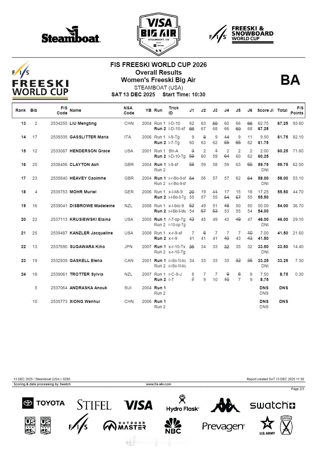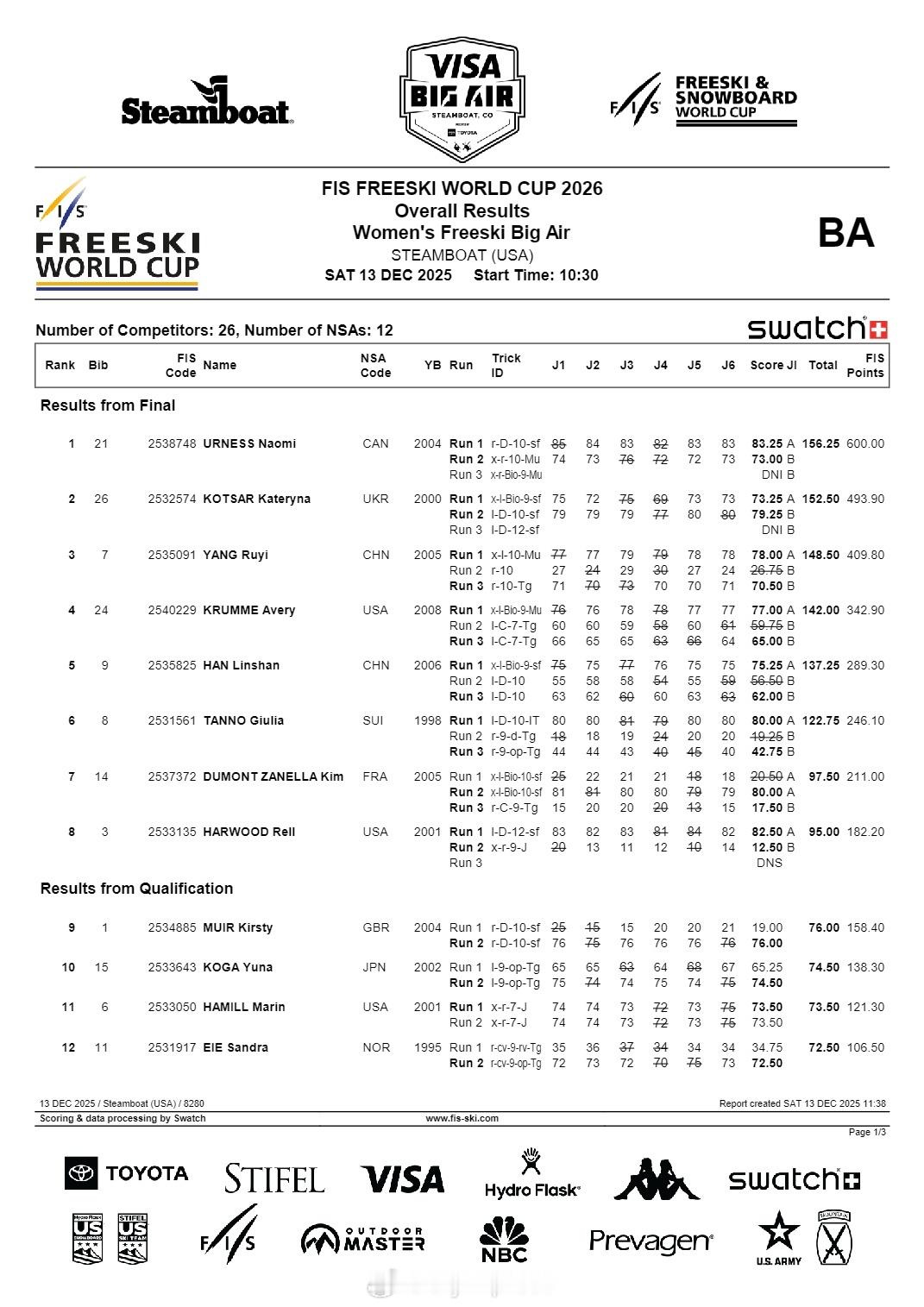 【自由式滑雪世界杯大跳台杨如意摘铜】国际体坛战报速递 12月13日,自由式滑雪世界杯大跳台美国Steamboat站结束。在女子比赛中,中国选手杨如意以148.50分获得铜牌,韩林杉名列第五。加拿大厄尔内斯和乌克兰科特萨分获金银牌。